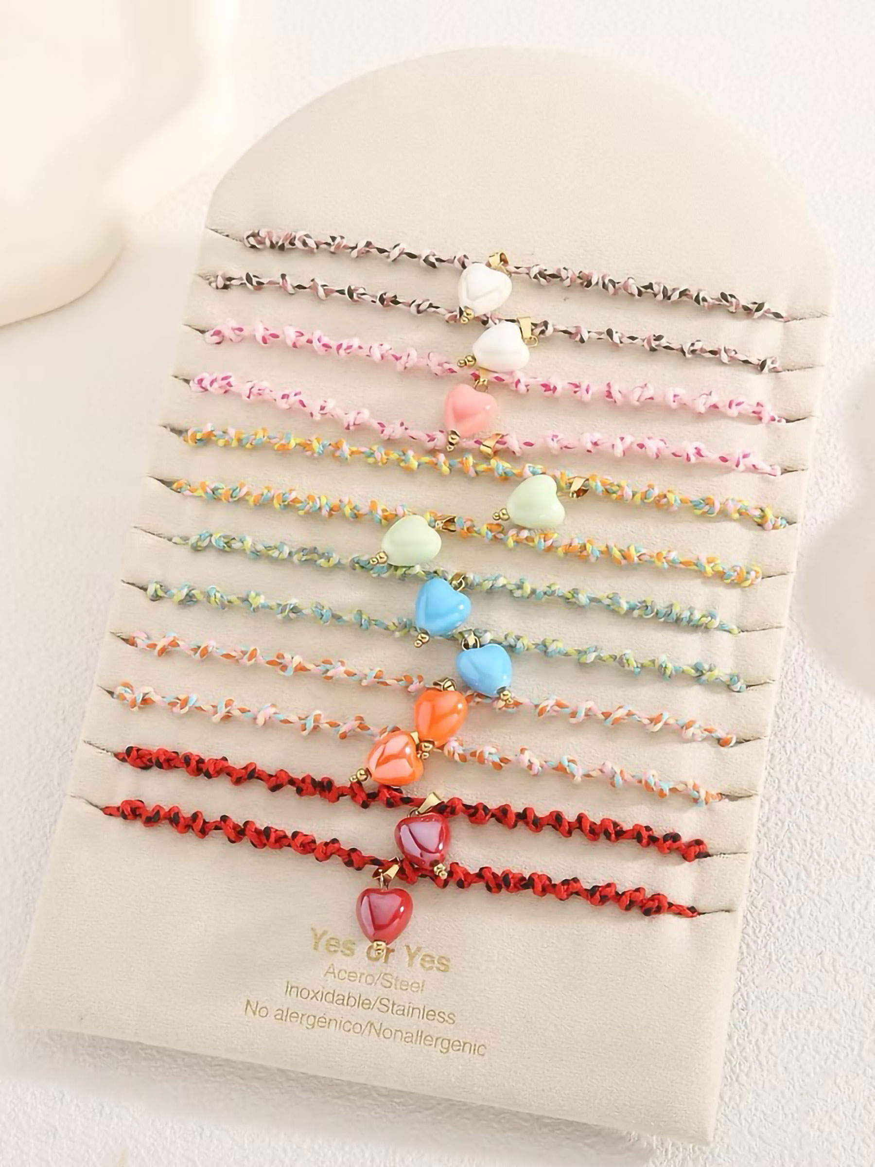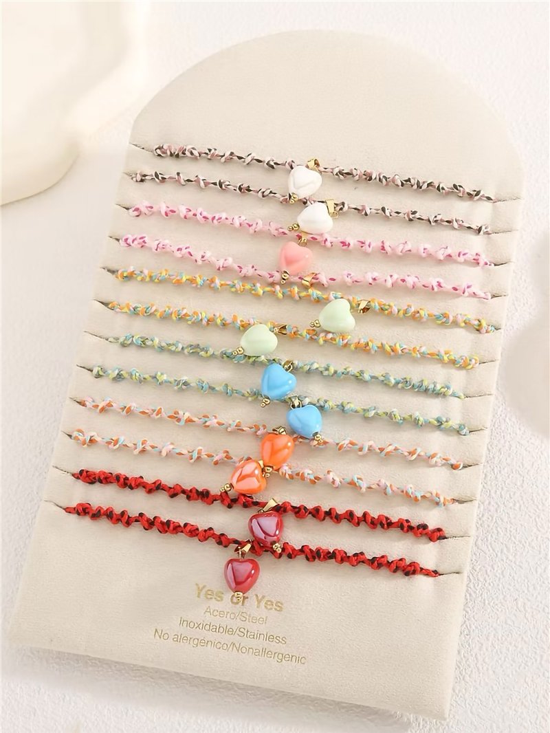 Conjunto de 12 collares ajustables de cordón con charm corazón - Expositor incluido