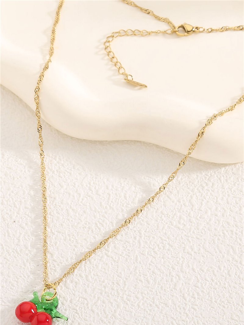 Collar cadena charm cerezas de resina - Acero inoxidable