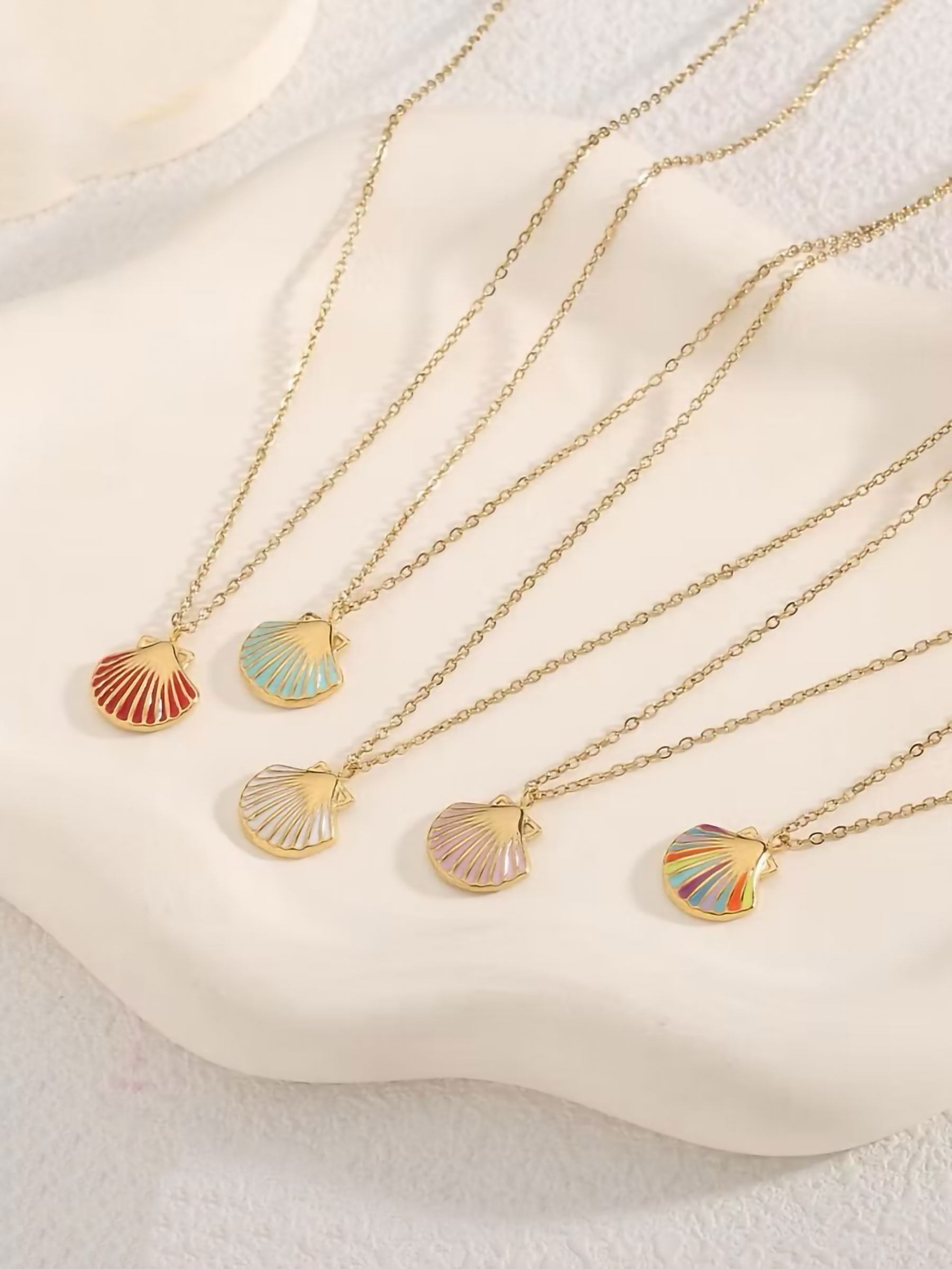 Collar cadena charm concha esmaltada - Acero inoxidable