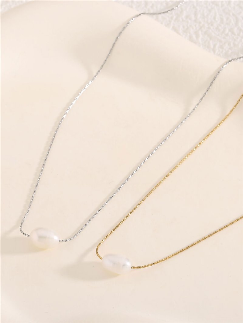 Detalles de collar cadena perla - acero inoxidable BS-DH61358-DH61359