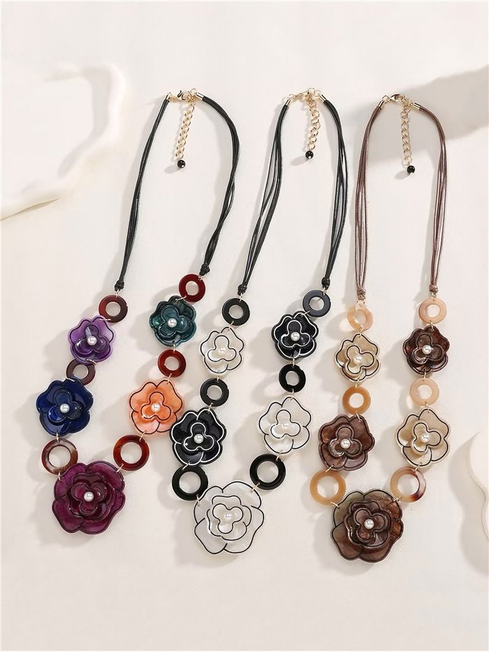 Collar cuerda flores múltiples de resina Collar cuerda flores múltiples de resina