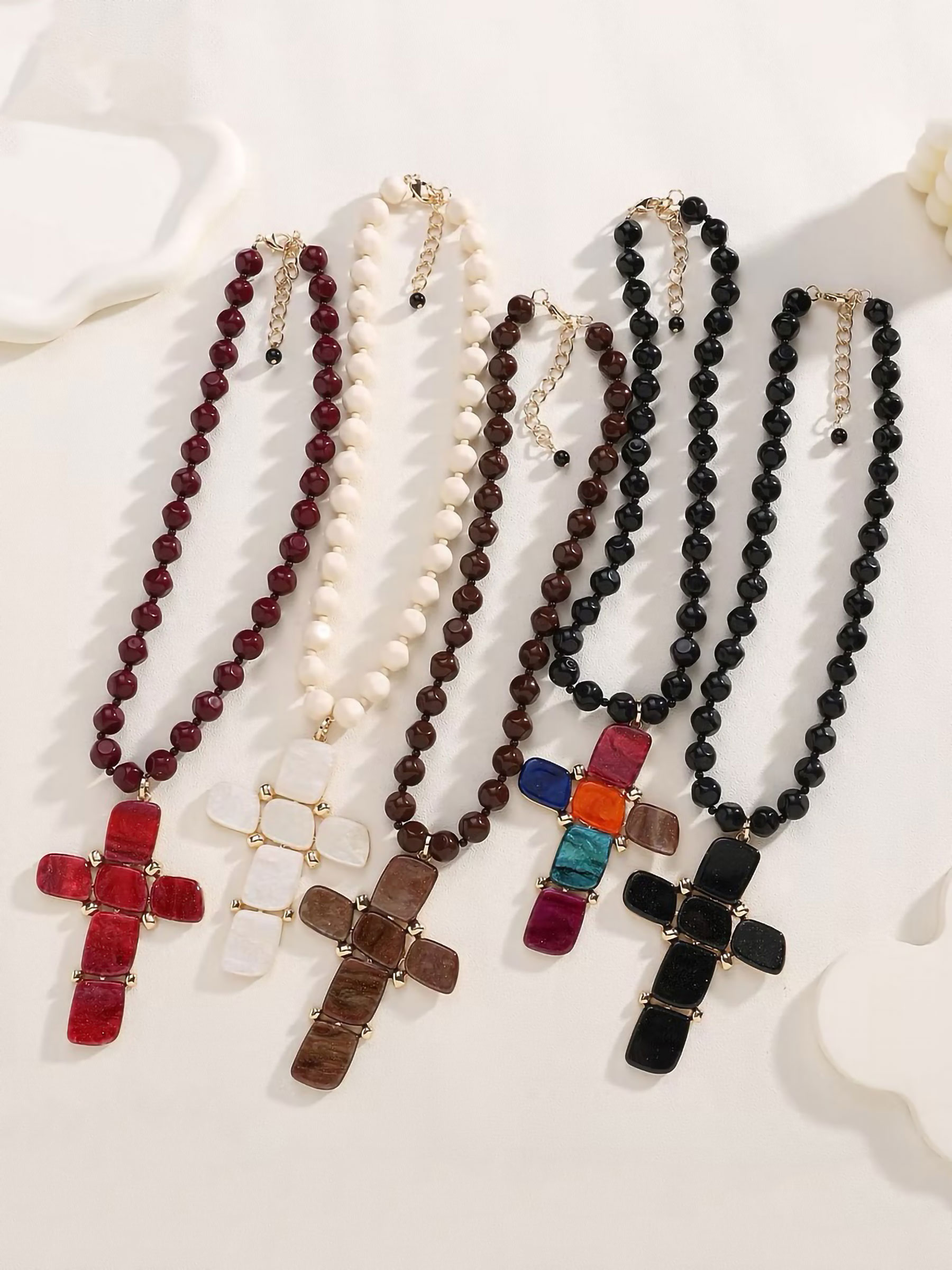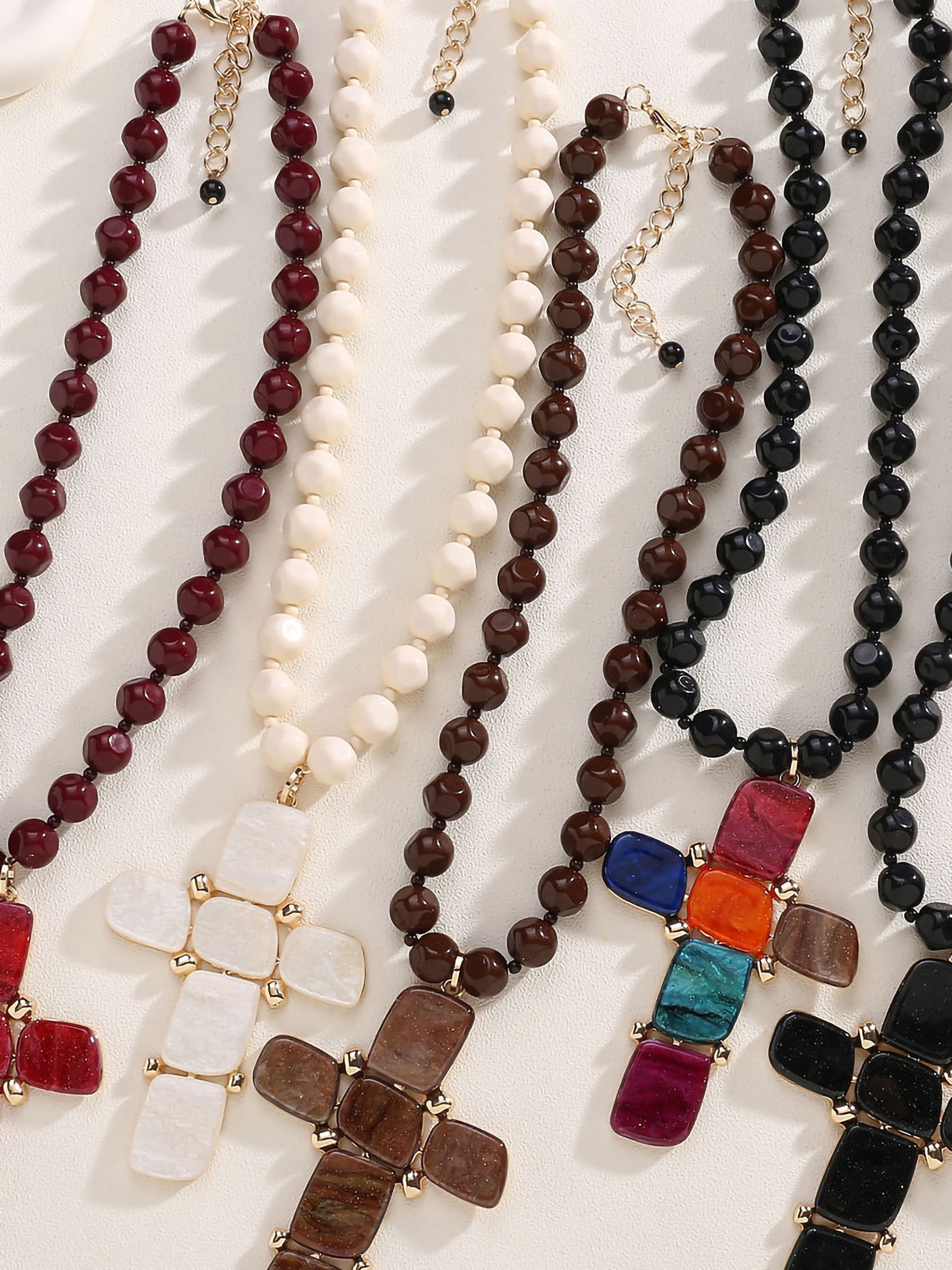 Detalles de collar cuentas con colgante cruz de resina BS-NSL700182