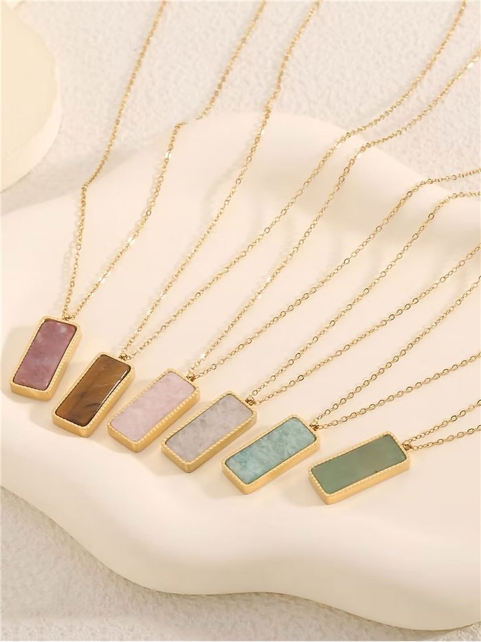 Detalles de collar colgante rectángular efecto piedra BS-QK983