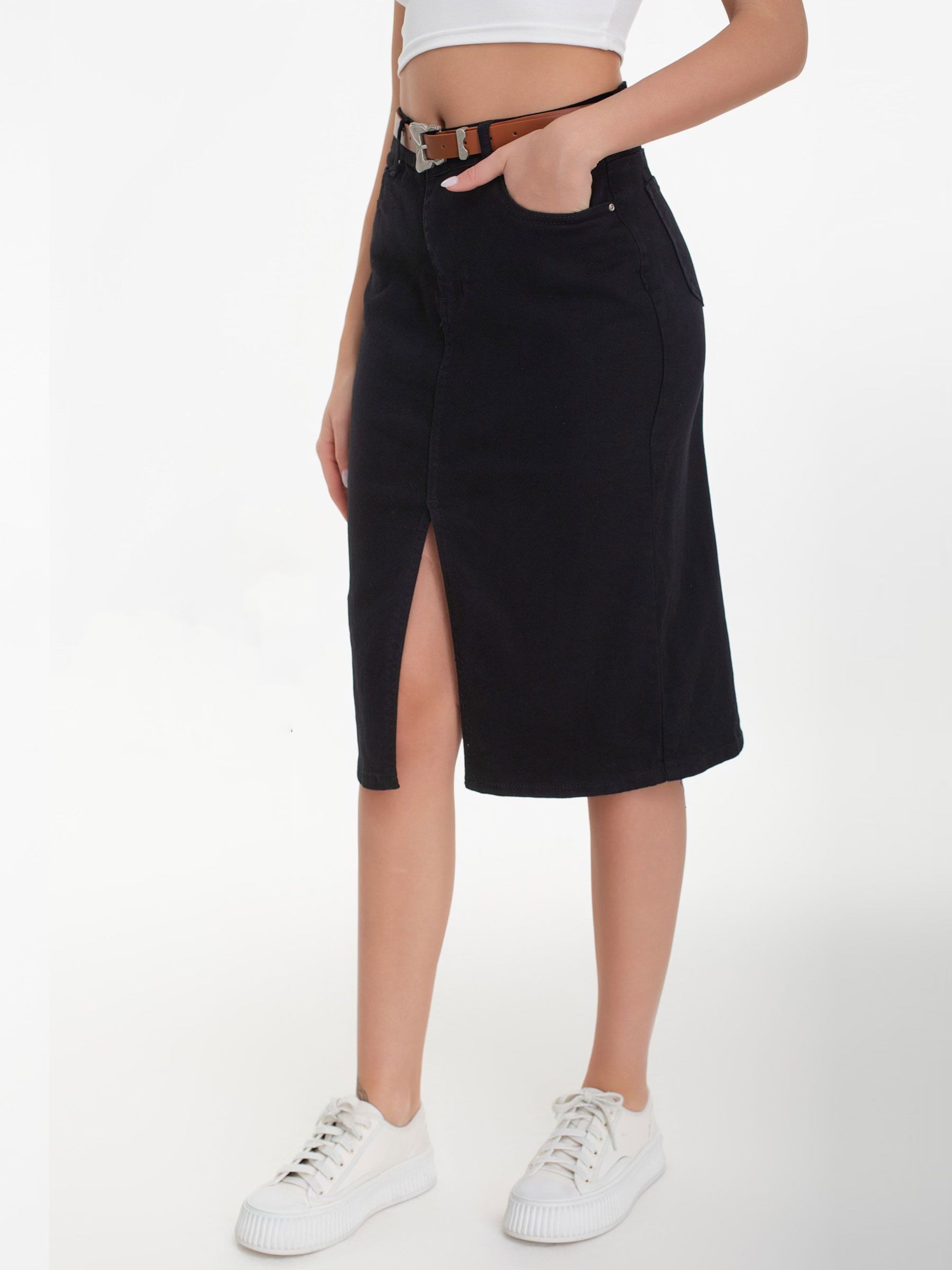 Detalles de falda denim midi cinturón MF-B22313-1-NEGRO