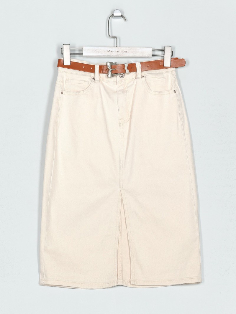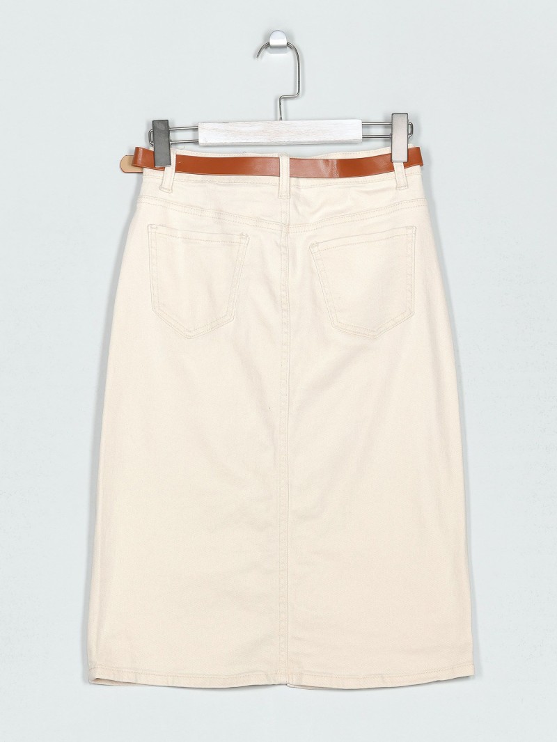Detalles de falda denim midi cinturón MF-B22313-3-BEIS