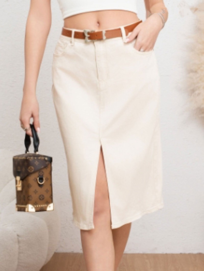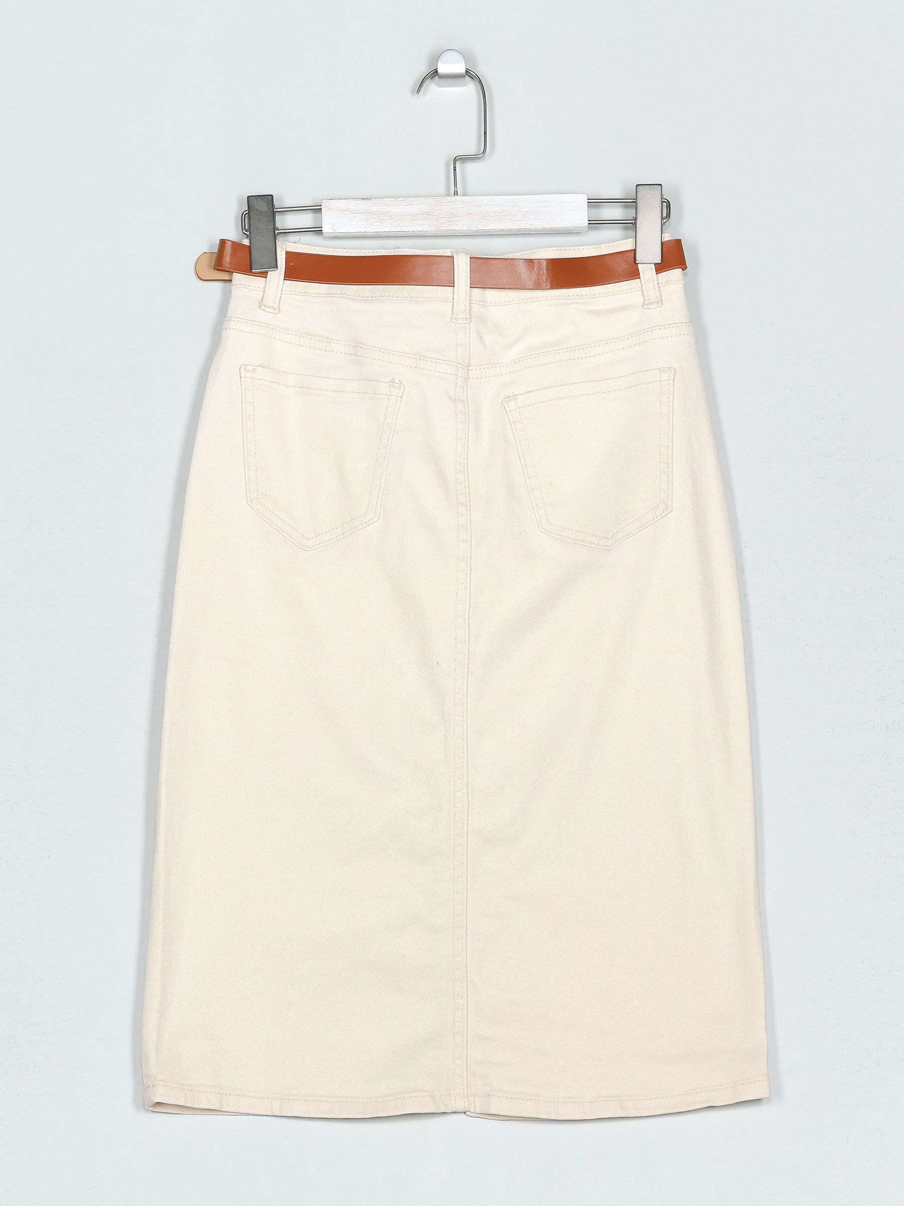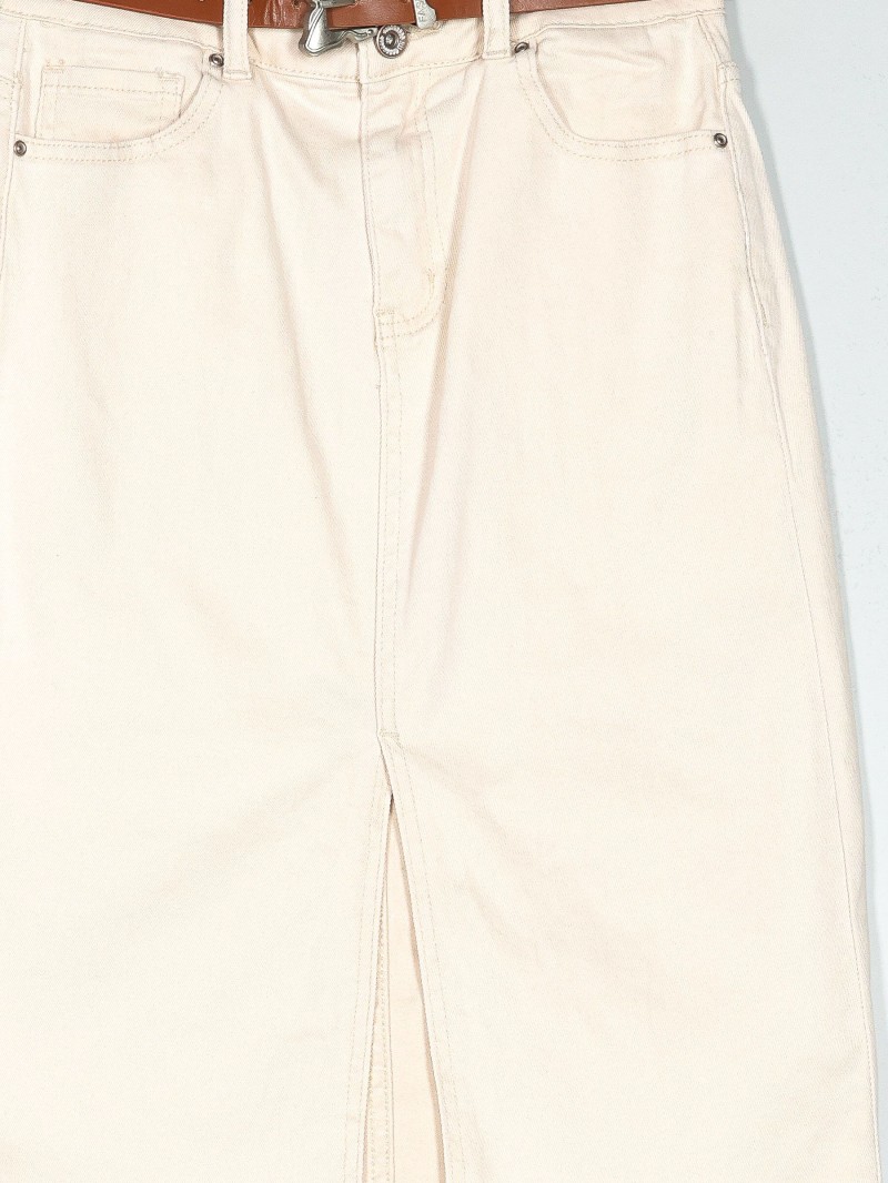 Falda denim midi cinturón beis (36-46)