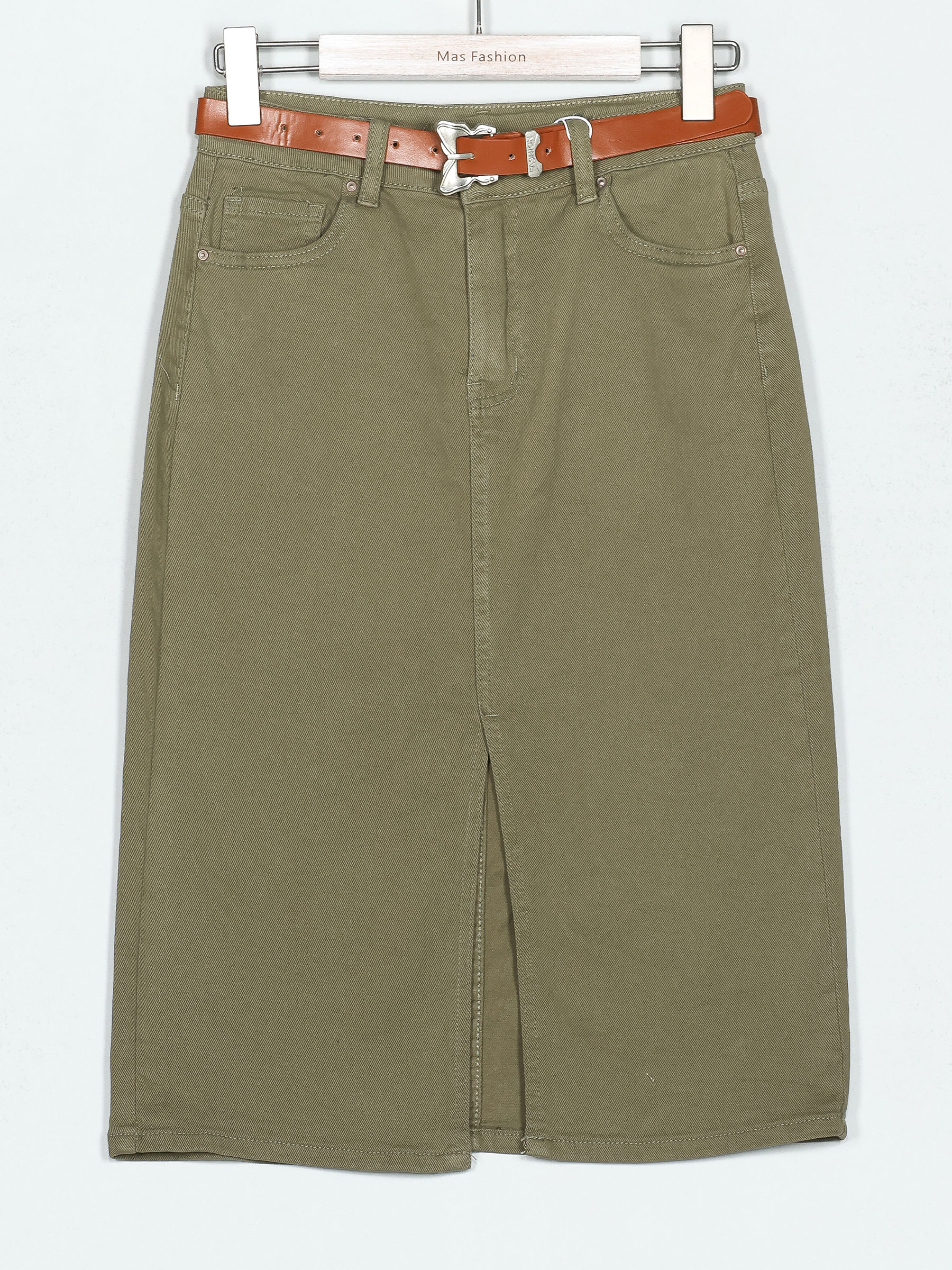Detalles de falda denim midi cinturón MF-B22313-5-VERDE-MILITAR