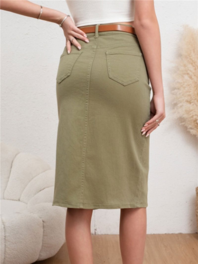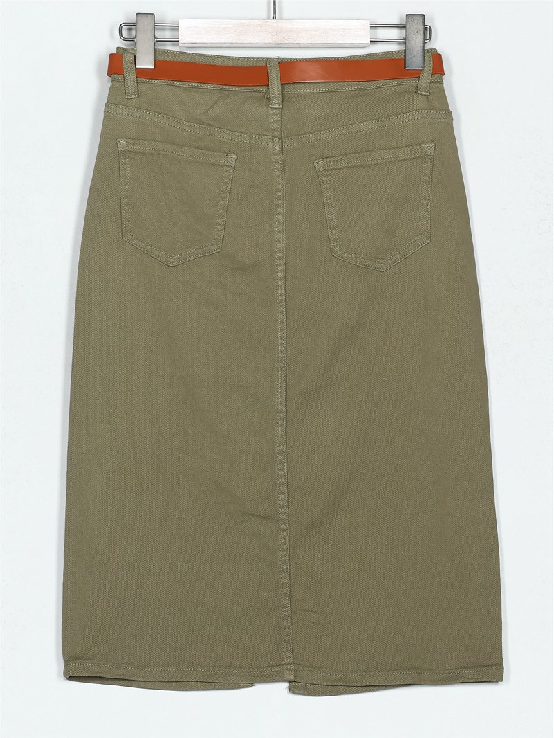 Falda denim midi cinturón verde-militar (36-46)