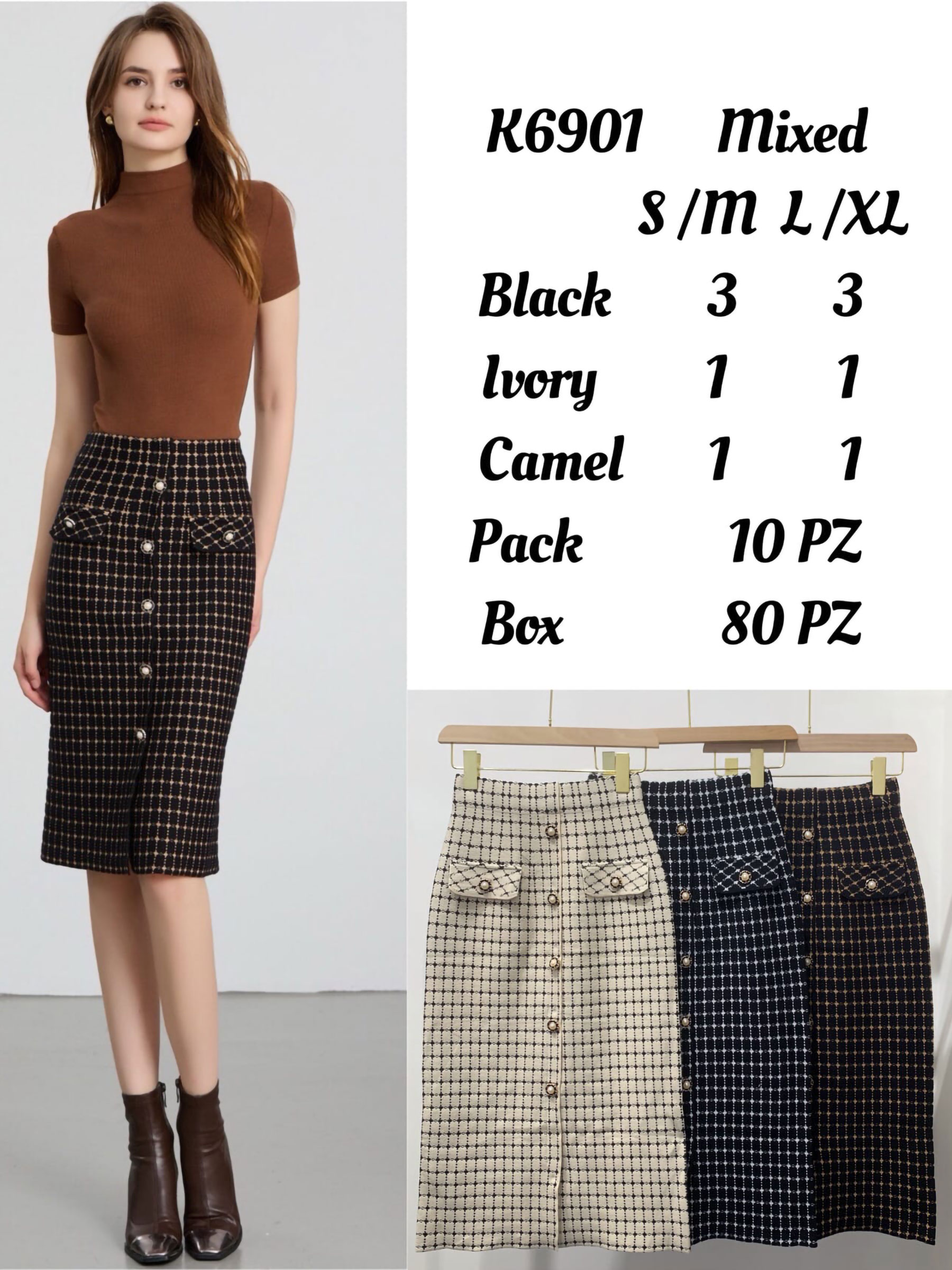 Detalles de falda midi punto botones LS-K6901