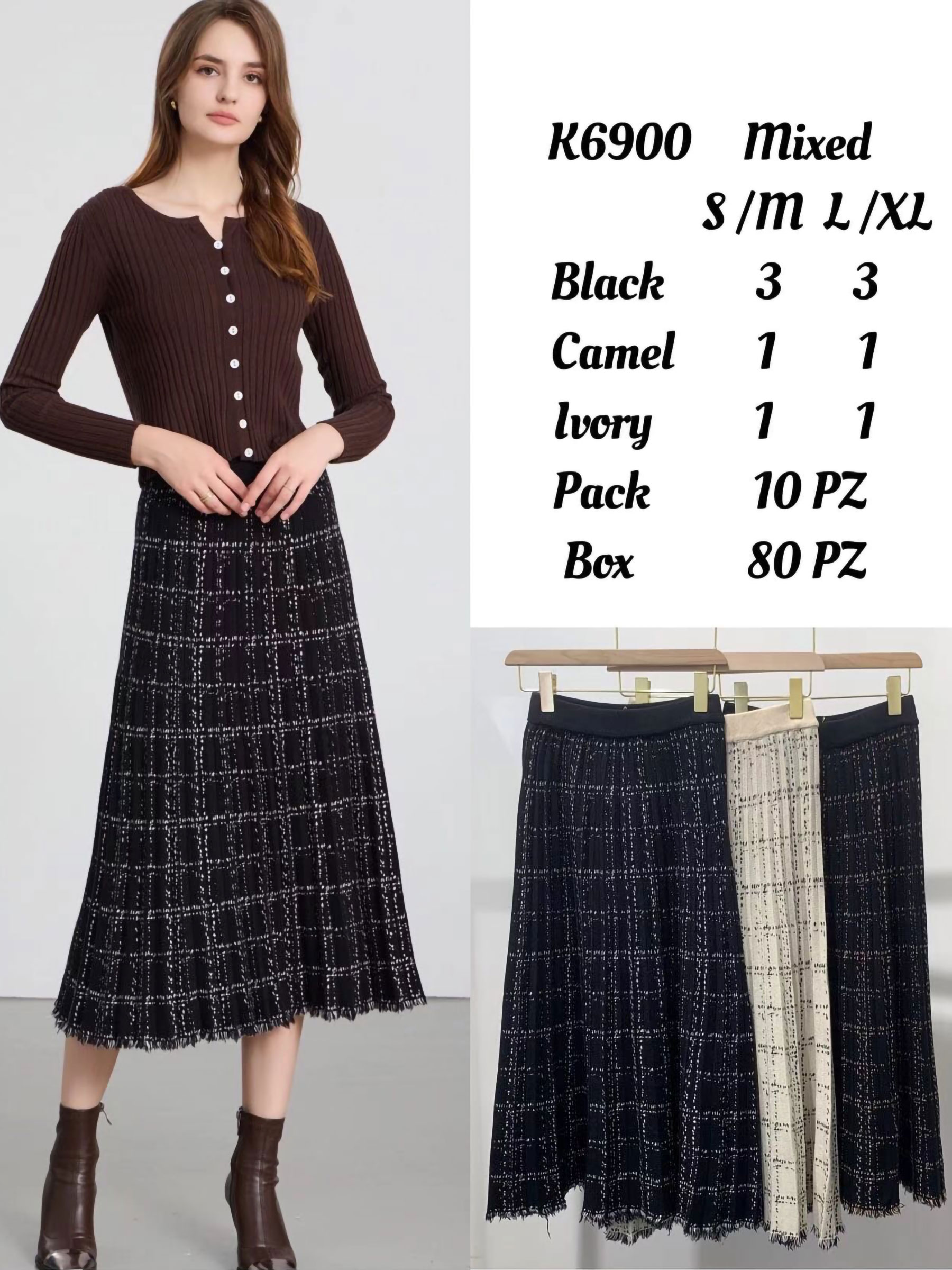Detalles de falda punto tweed midi LS-K6900