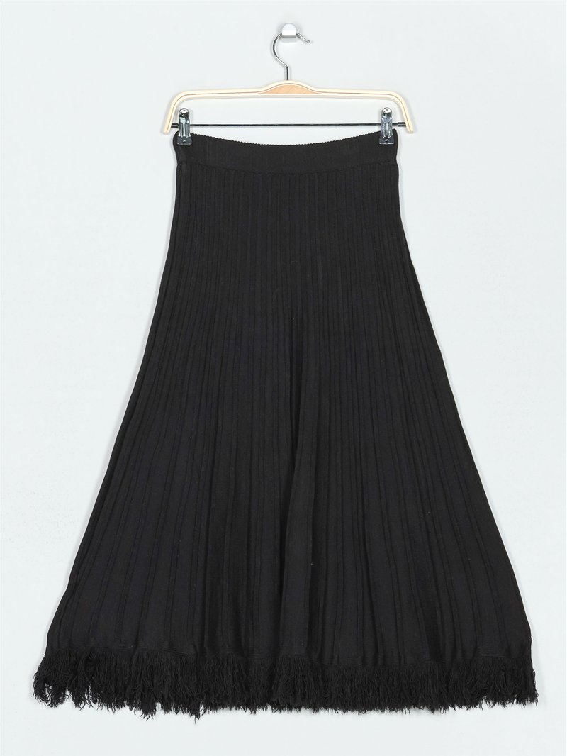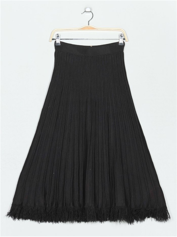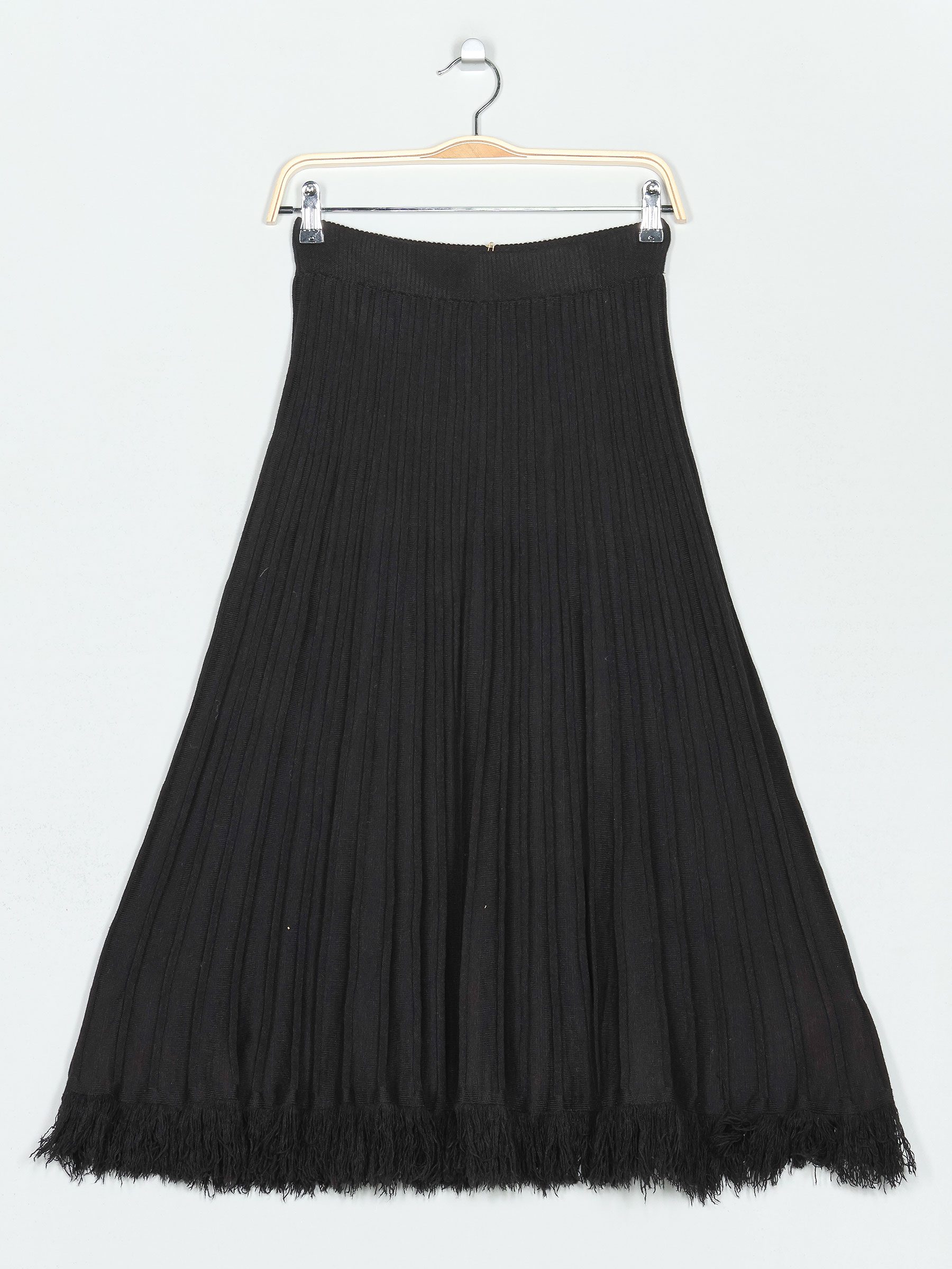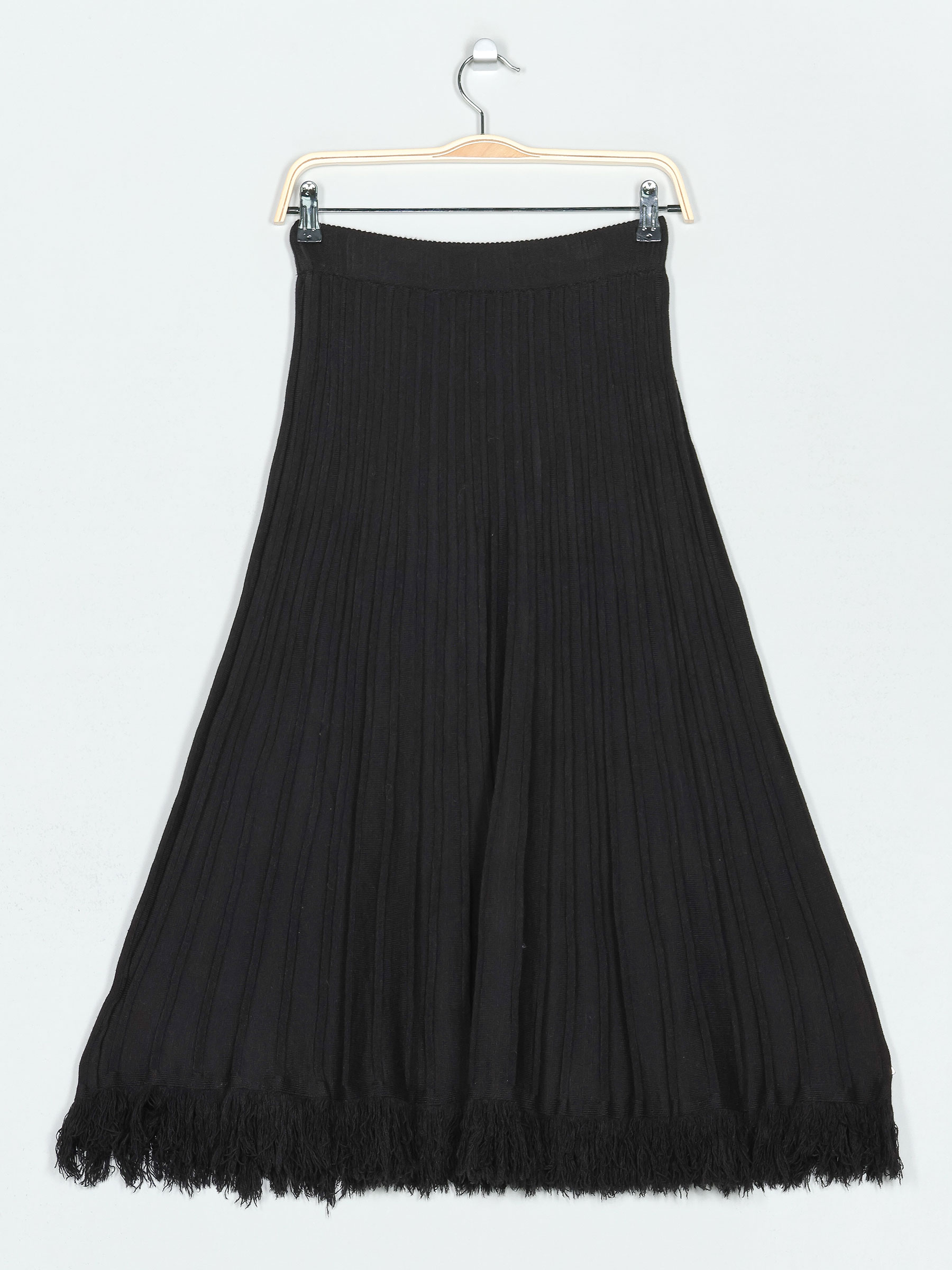 Falda midi de punto cálido. Tacto suave. Bajo acabado desflecado. Cintura elástica.