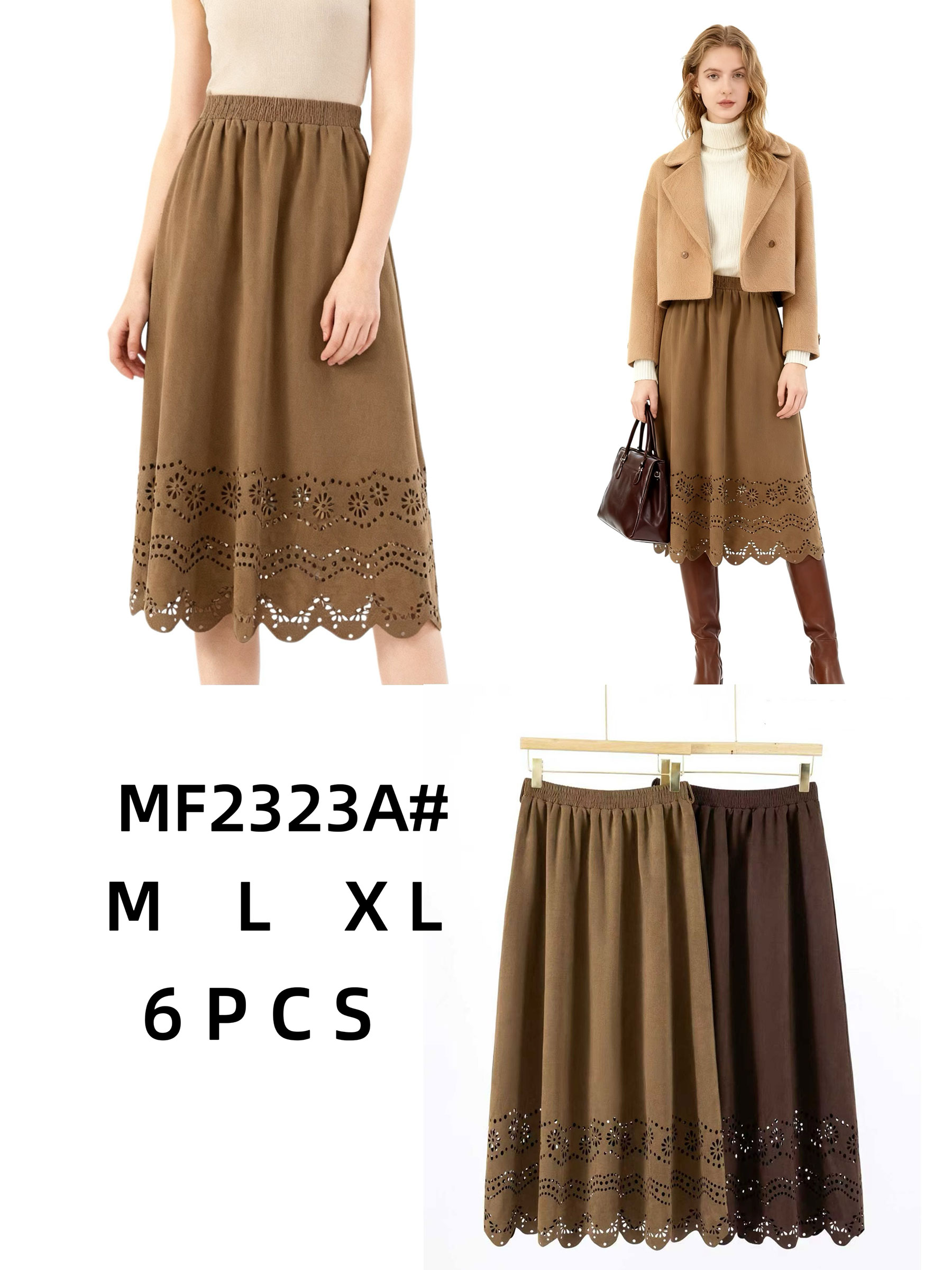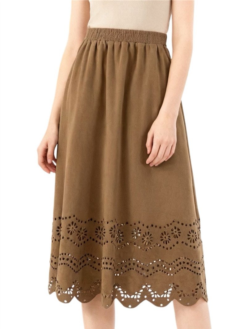 Detalles de falda midi calada efecto ante con forro MF-MF2323A
