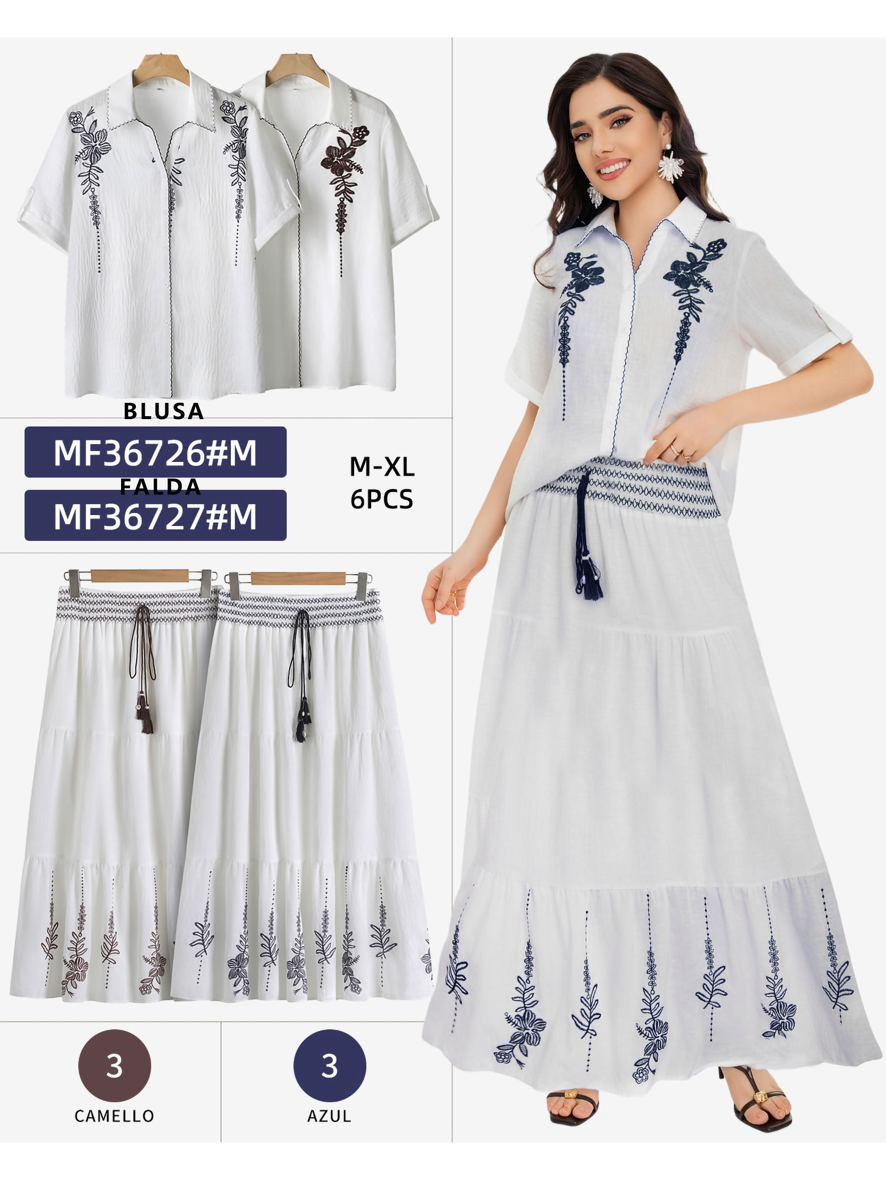 Falda larga bordada cintura nido