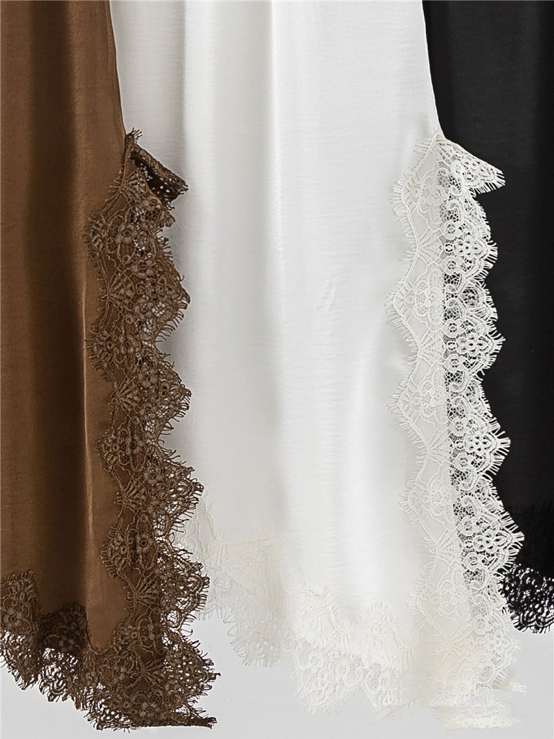 Falda midi satinada asimétrica con encaje