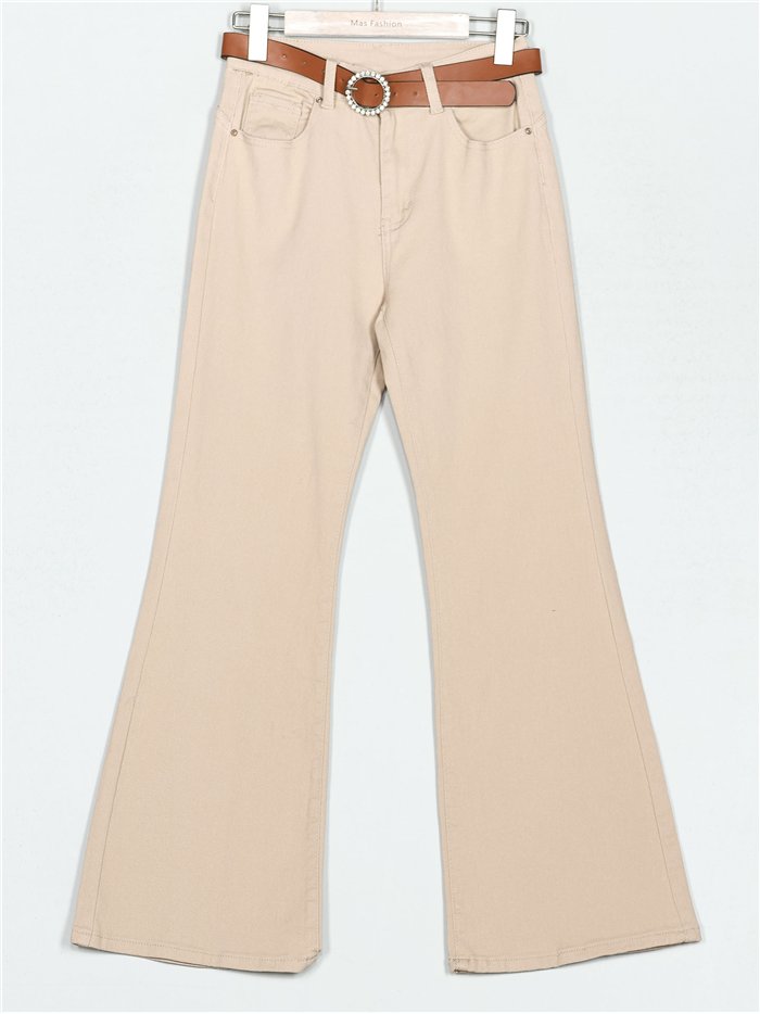 Jeans flare cinturón beis (S-XXL)