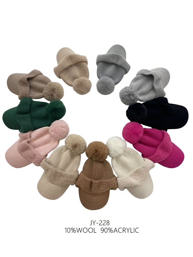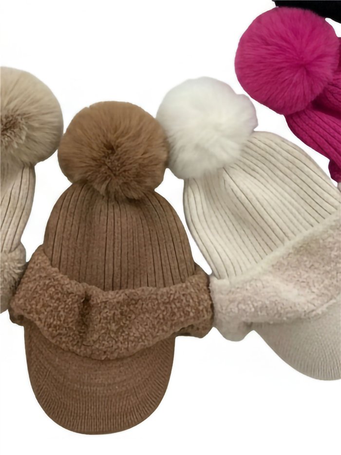 Detalles de gorra de punto afelpado con visera y pompón HY-JY-228