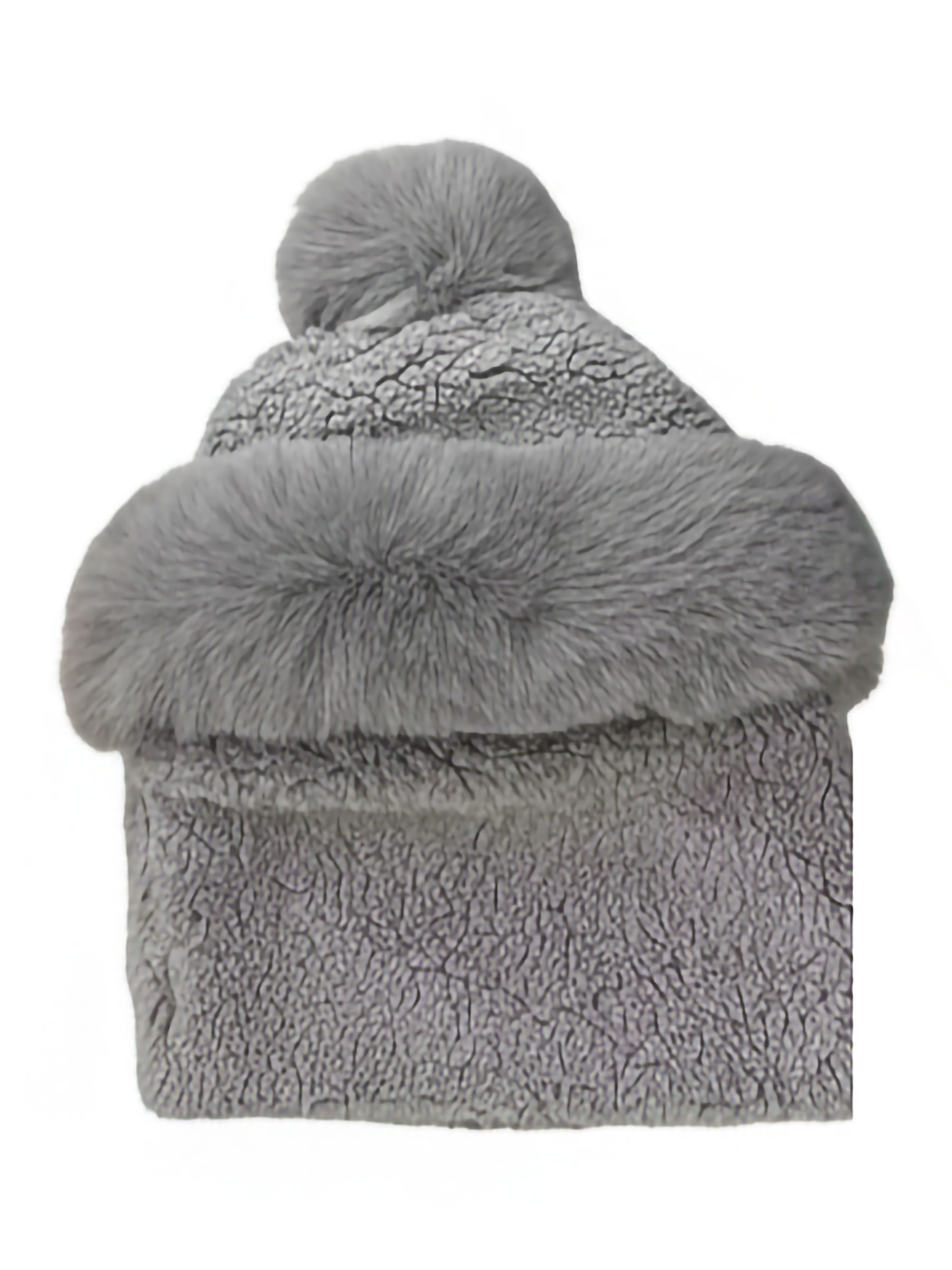 Detalles de conjunto de gorro y cuello borreguito con pompón HY-JY-249