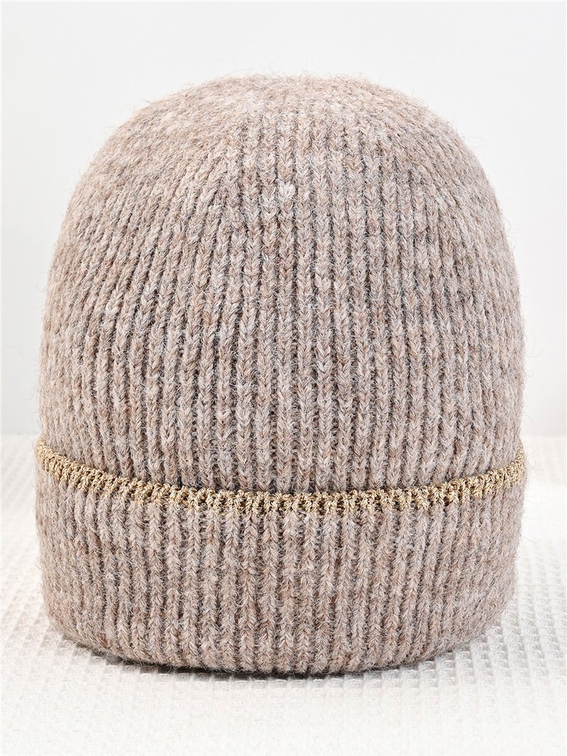 Detalles de gorro punto franja metalizada tacto cachemira BF-GRA-4679