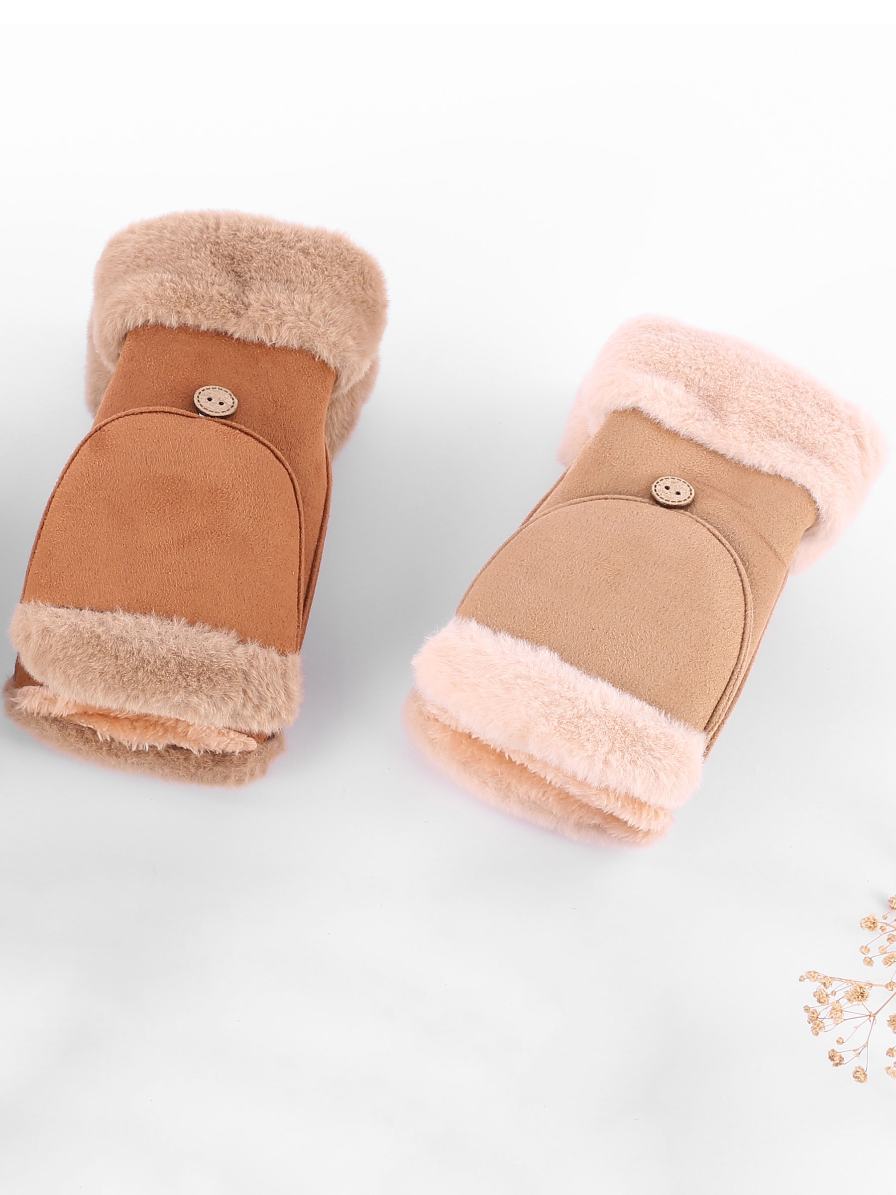Guantes sin dedos con forro polar interior y botón decorativo. Efecto ante.