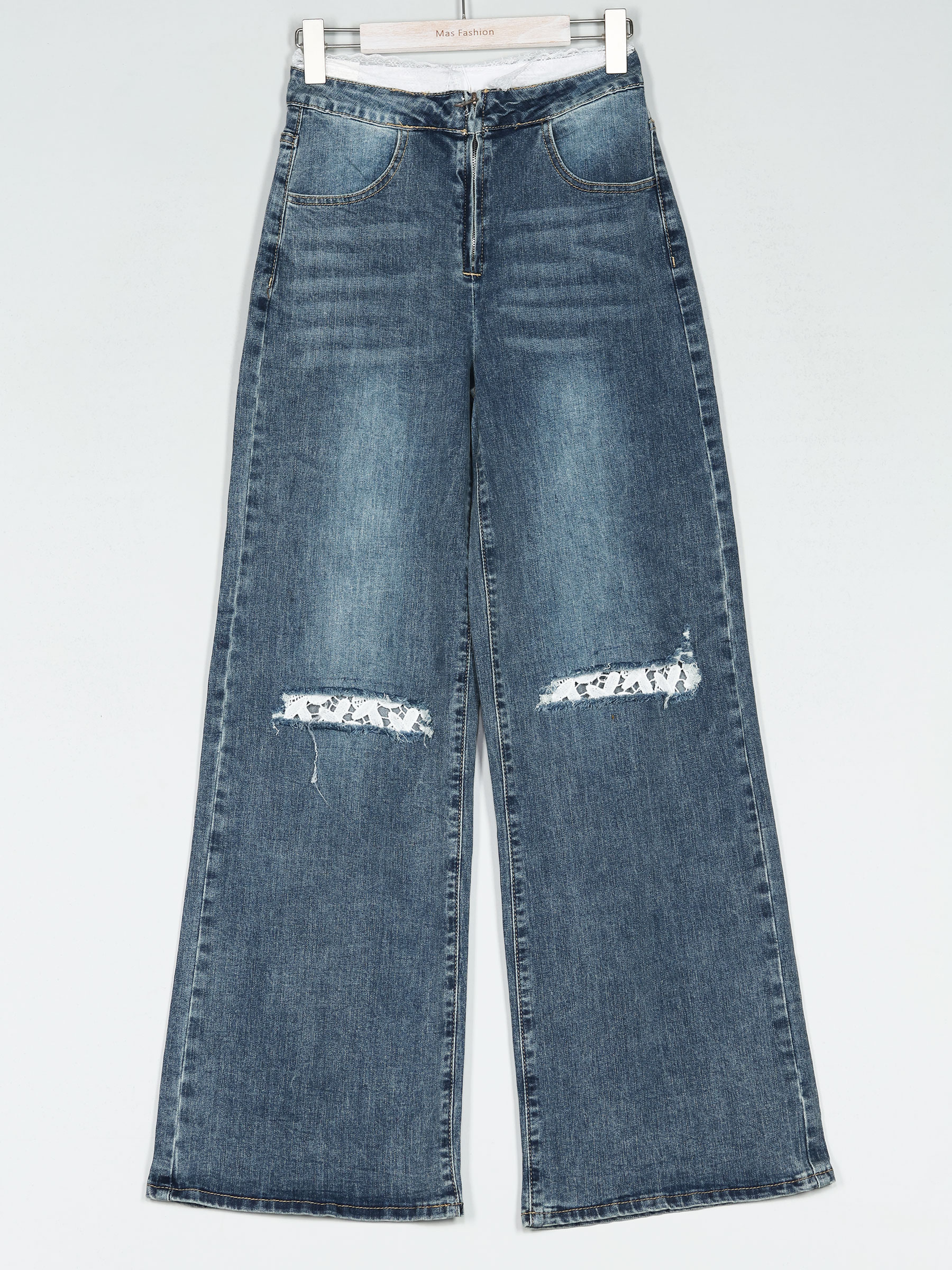 Detalles de jeans rectos rotos encaje MF-AQ1661