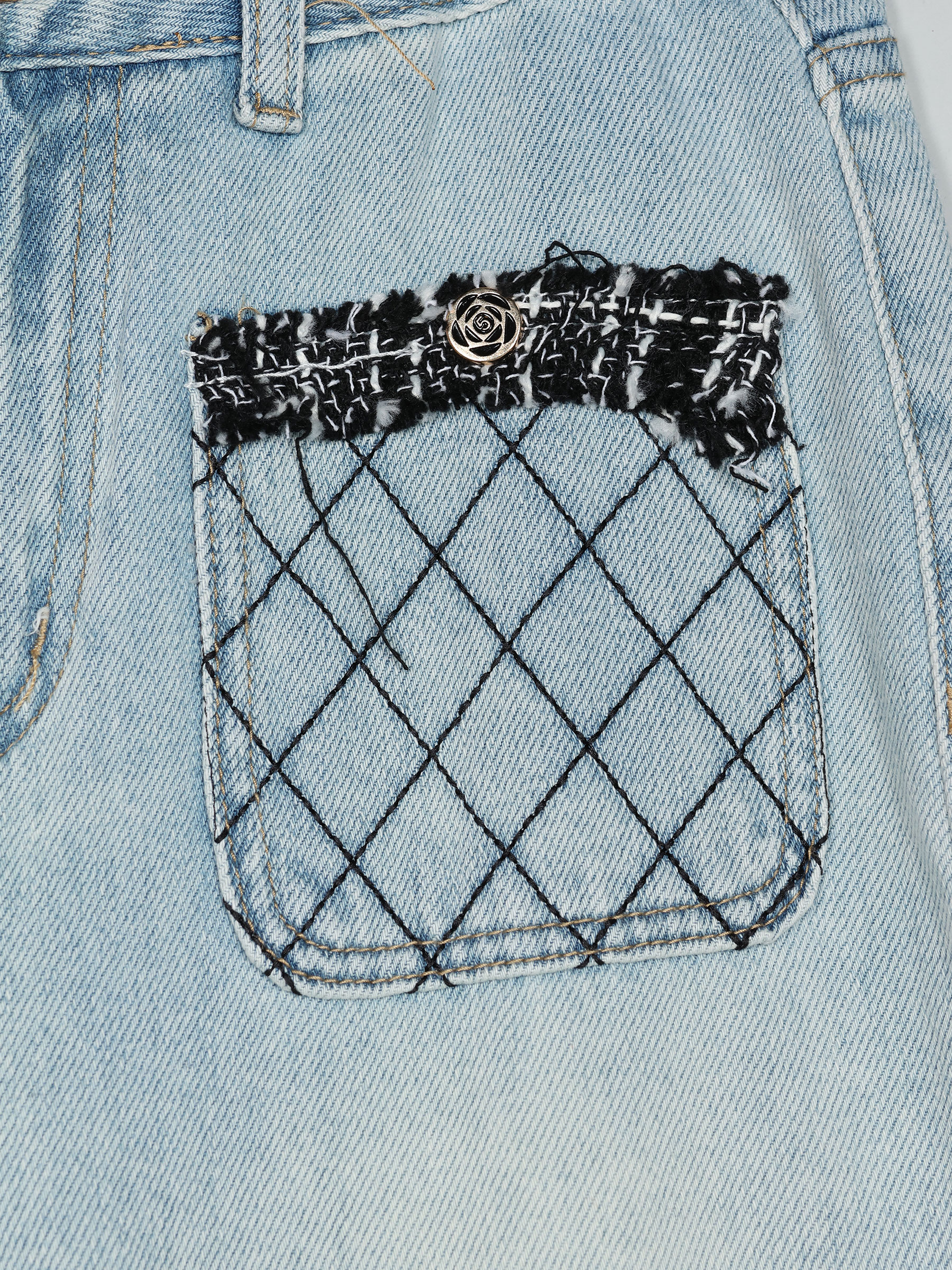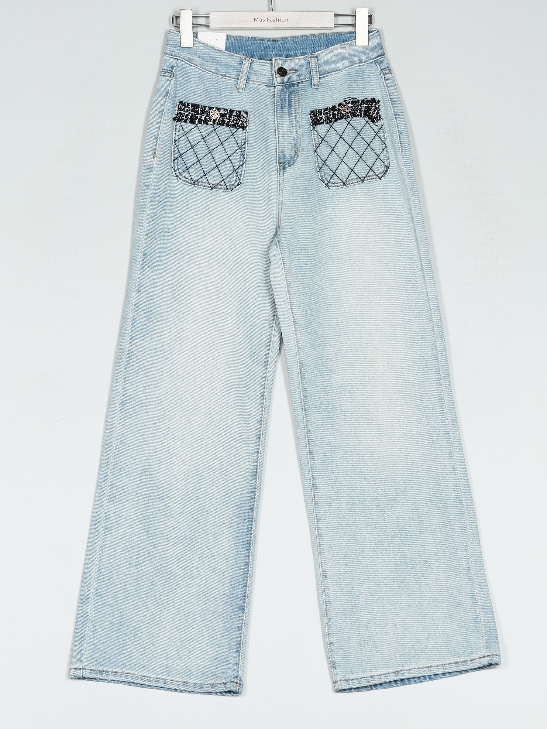 Detalles de jeans rectos bolsillos tweed MF-AQ1670