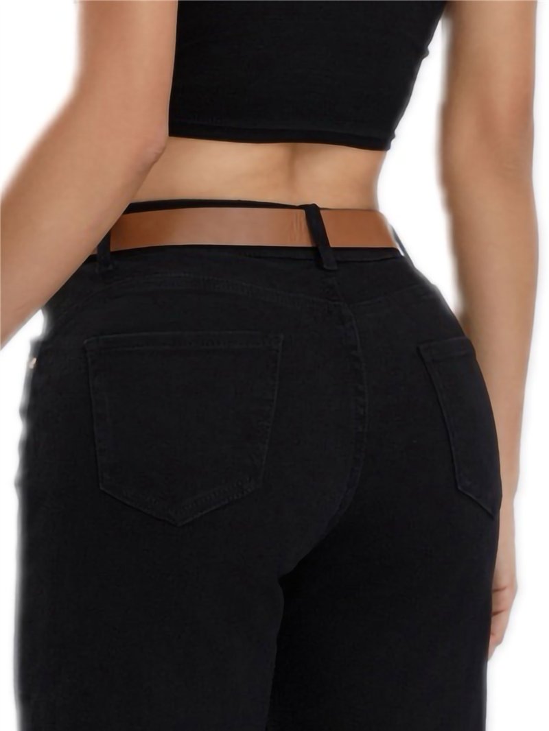 Detalles de jeans rectos cinturón MF-B21996-1-NEGRO