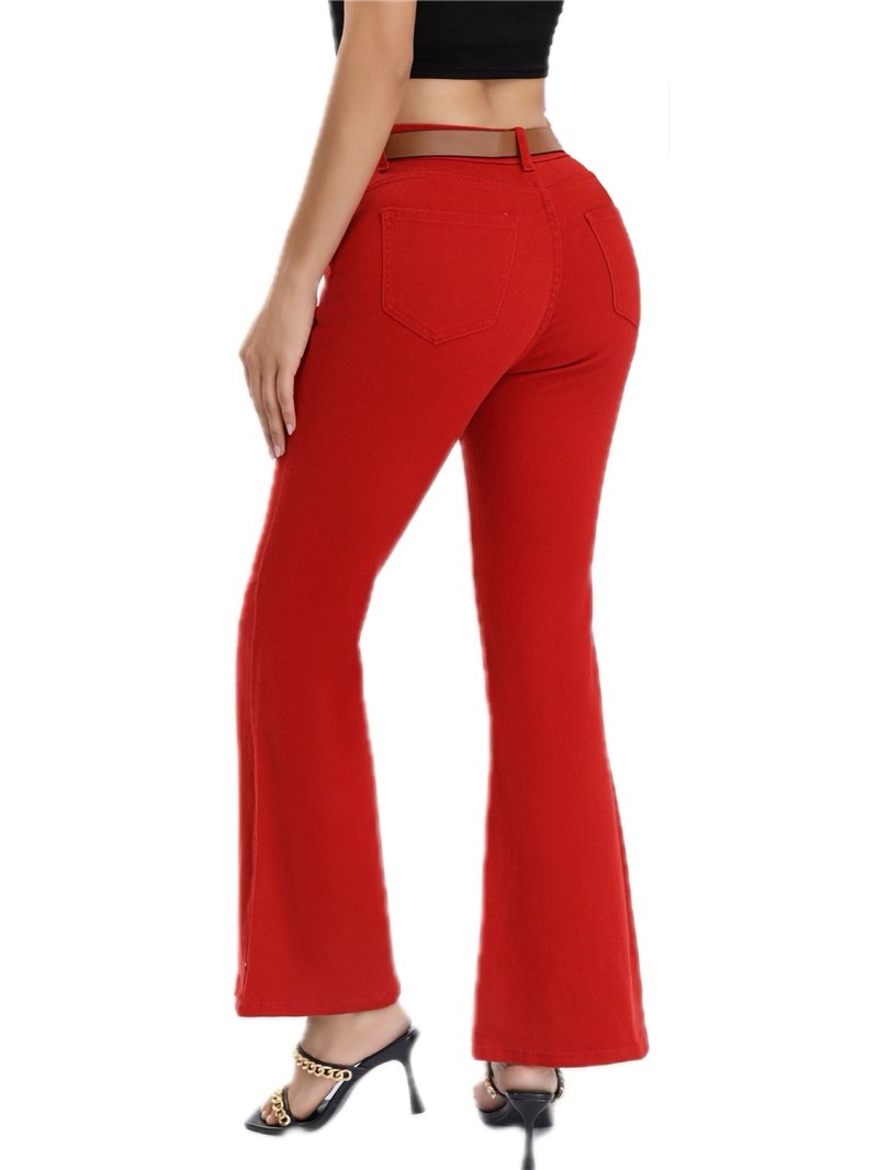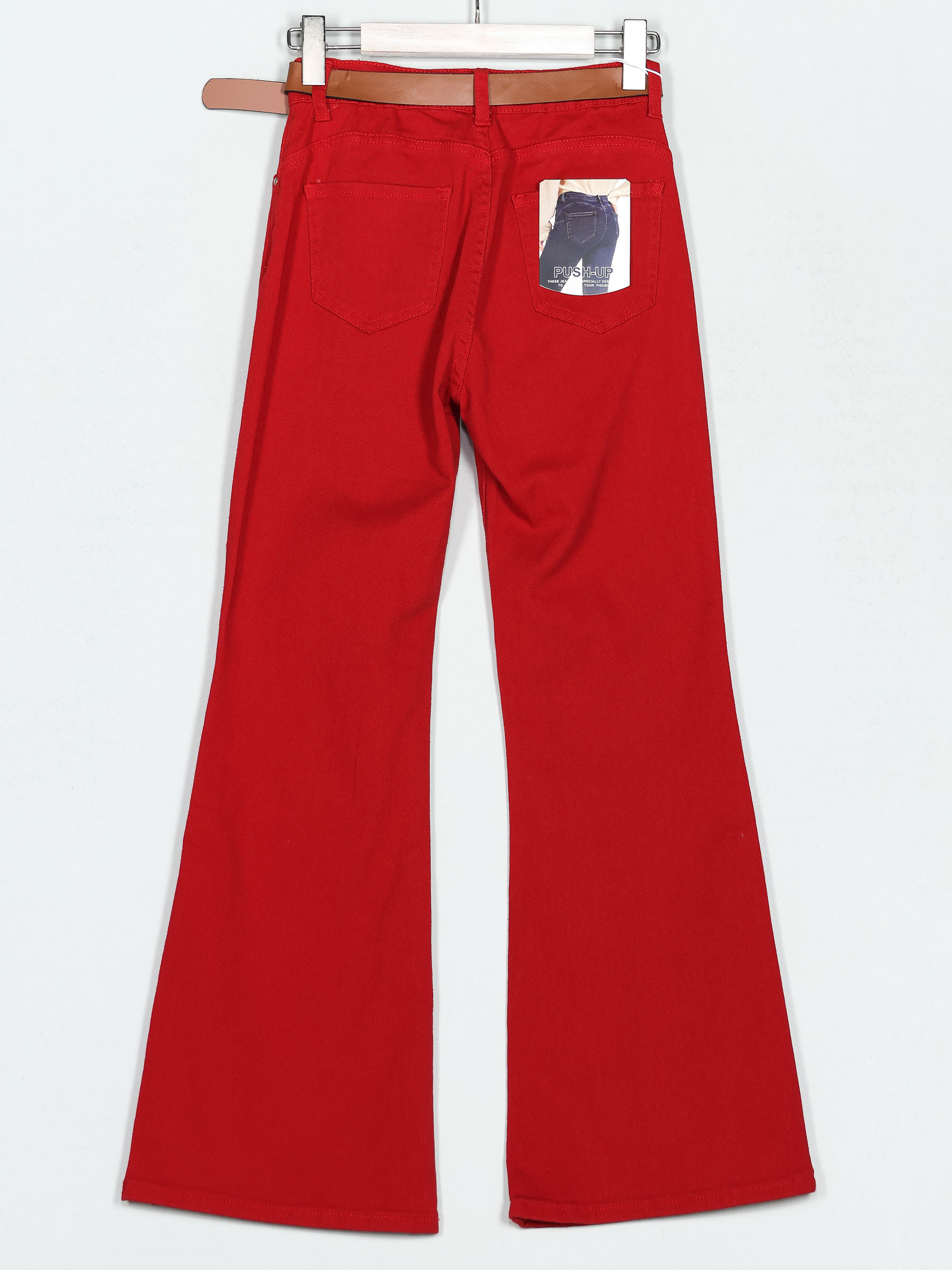 Detalles de jeans flare cinturón MF-B21999-5-ROJO