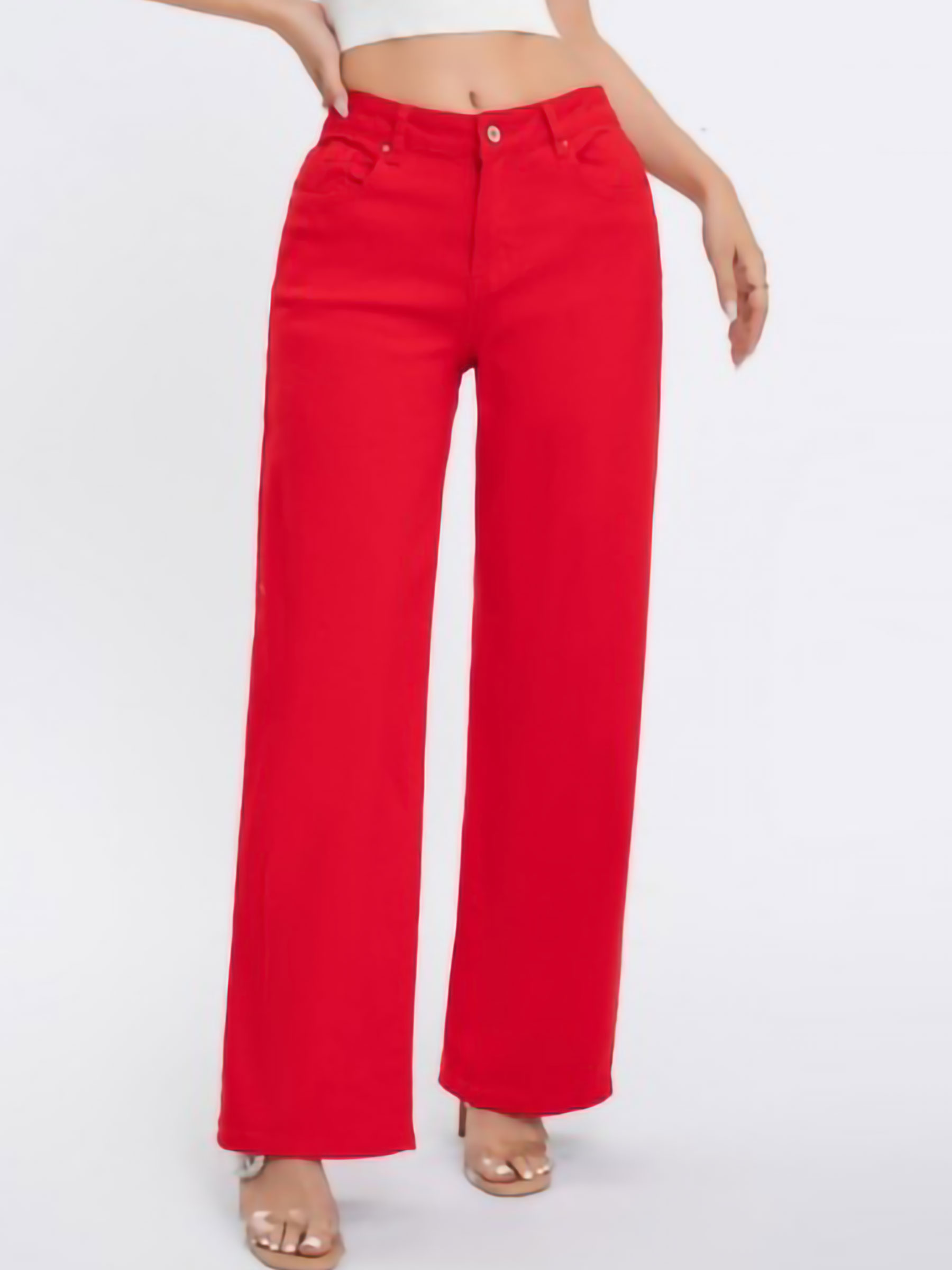 Detalles de jeans básico rectos MF-B22515-3-ROJO