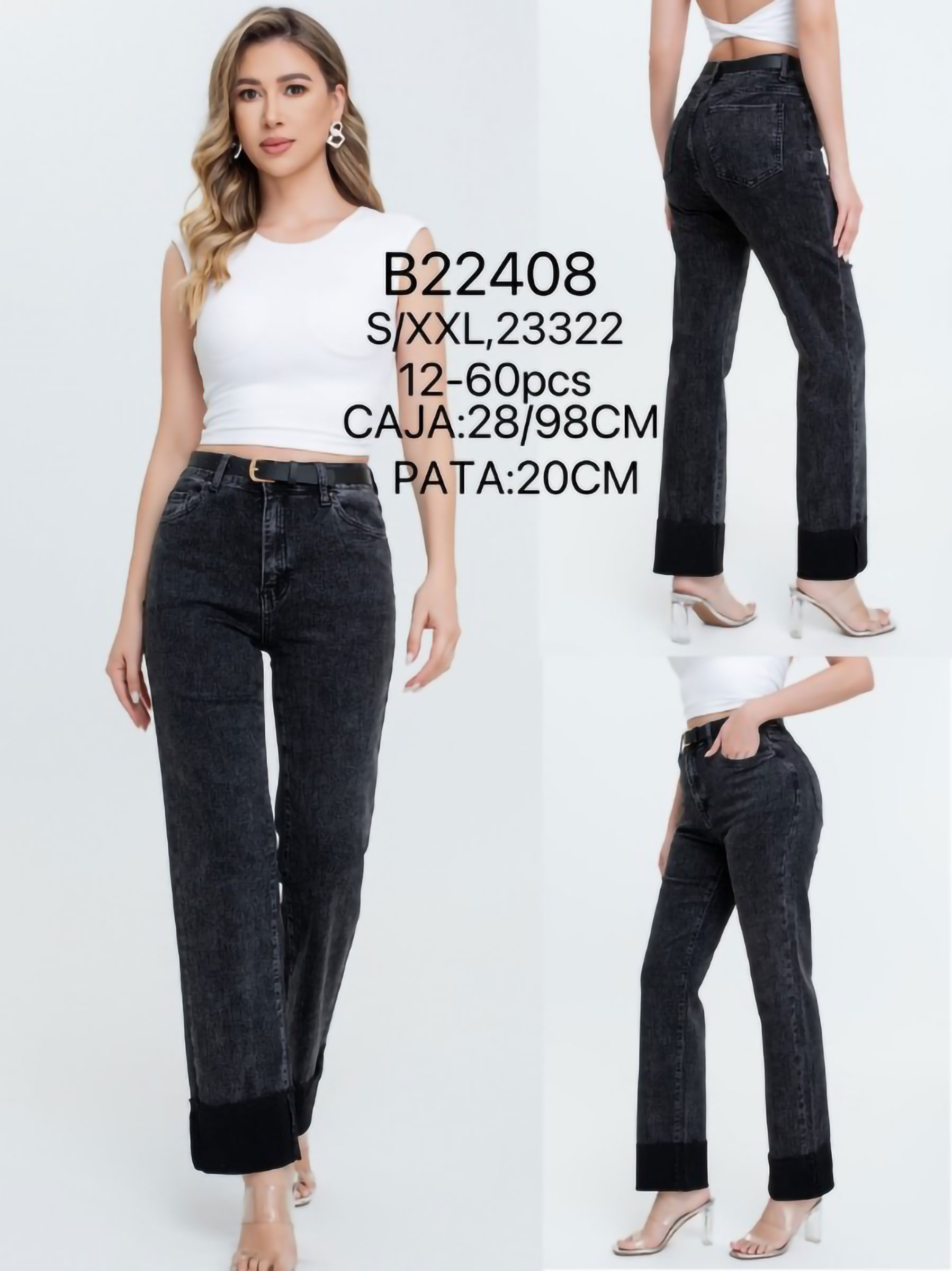 Medidas de S: largo -98 cm. cintura -64 cm. tiro -28 cm. cadera -92 cm. bajo -40 cm.