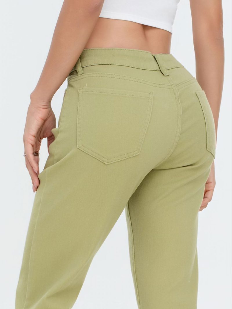 Pantalón vaqueros básico. Talla grande. Tiro alto. Cinco bolsillos. Cierre frontal con cremallera y botón metálico.