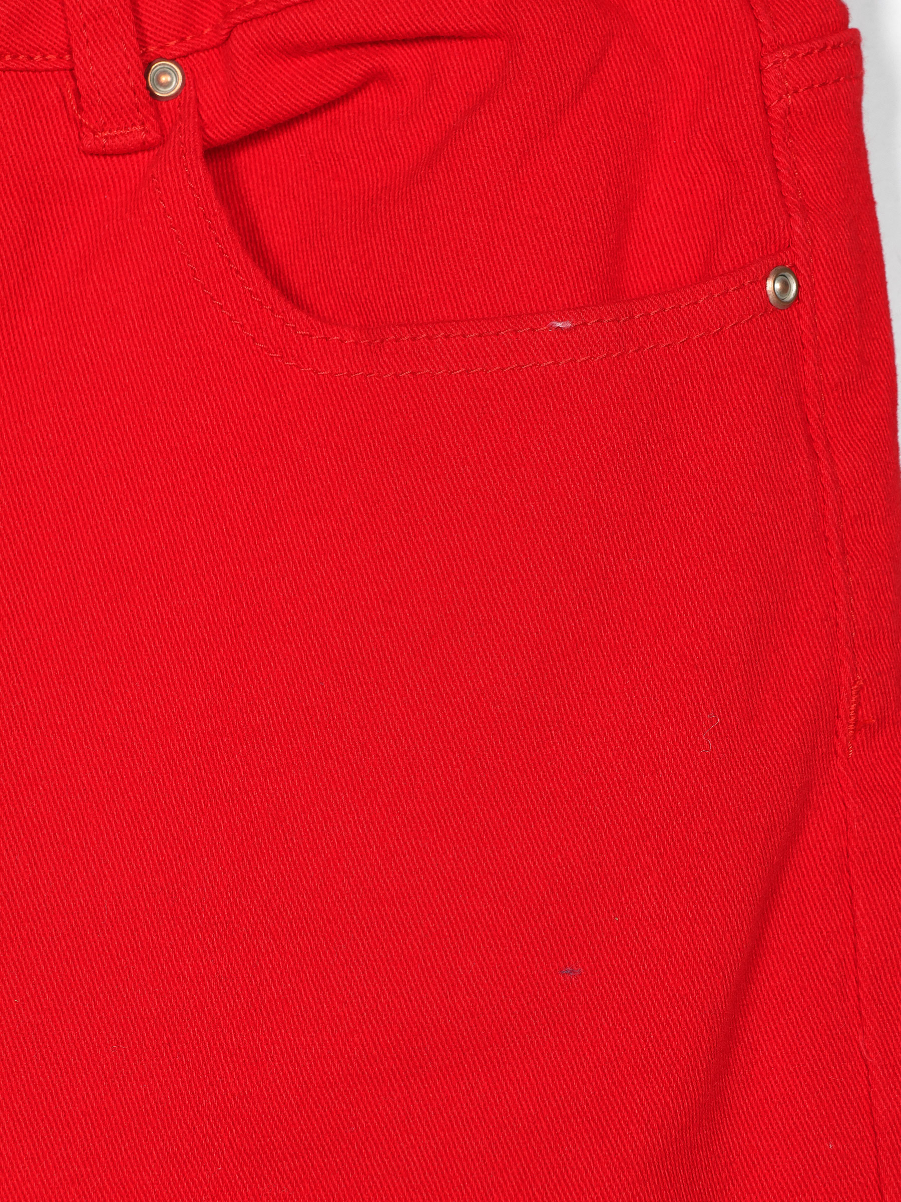 Pantalón vaquero. Tejido elástico. Cintura alta. Cierre con cremallera y botón. Bolsillos delanteros. Bolsillos traseros. Corte recto.