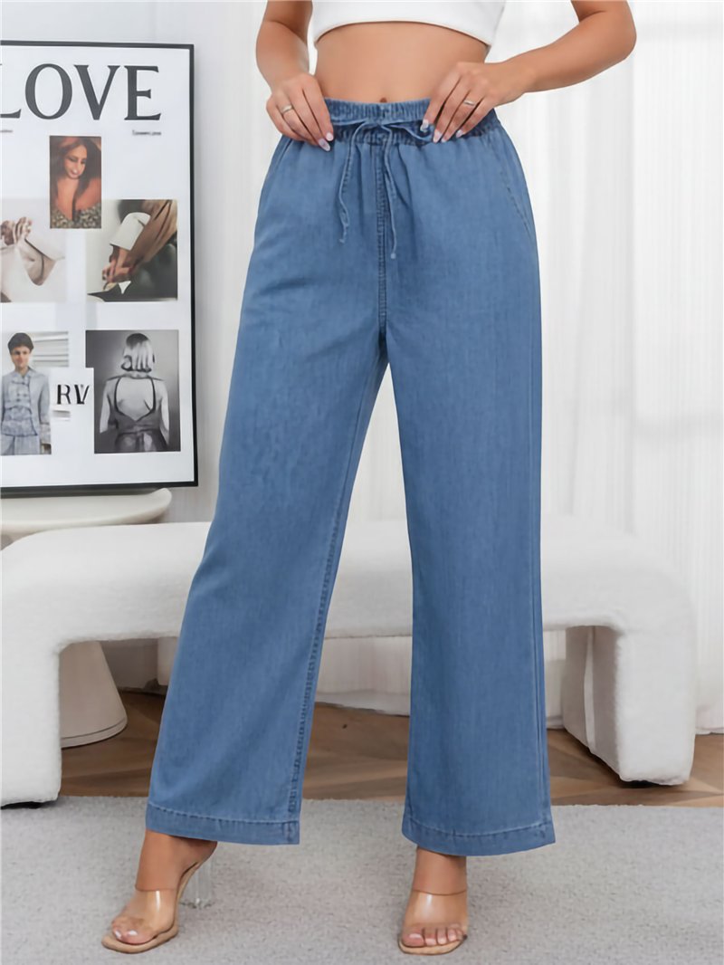 Pantalón denim ancho con cordón