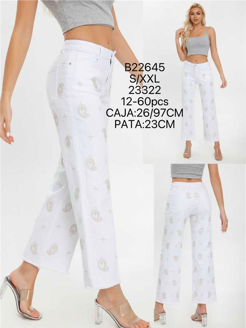Jeans rectos blancos bordado cachemir