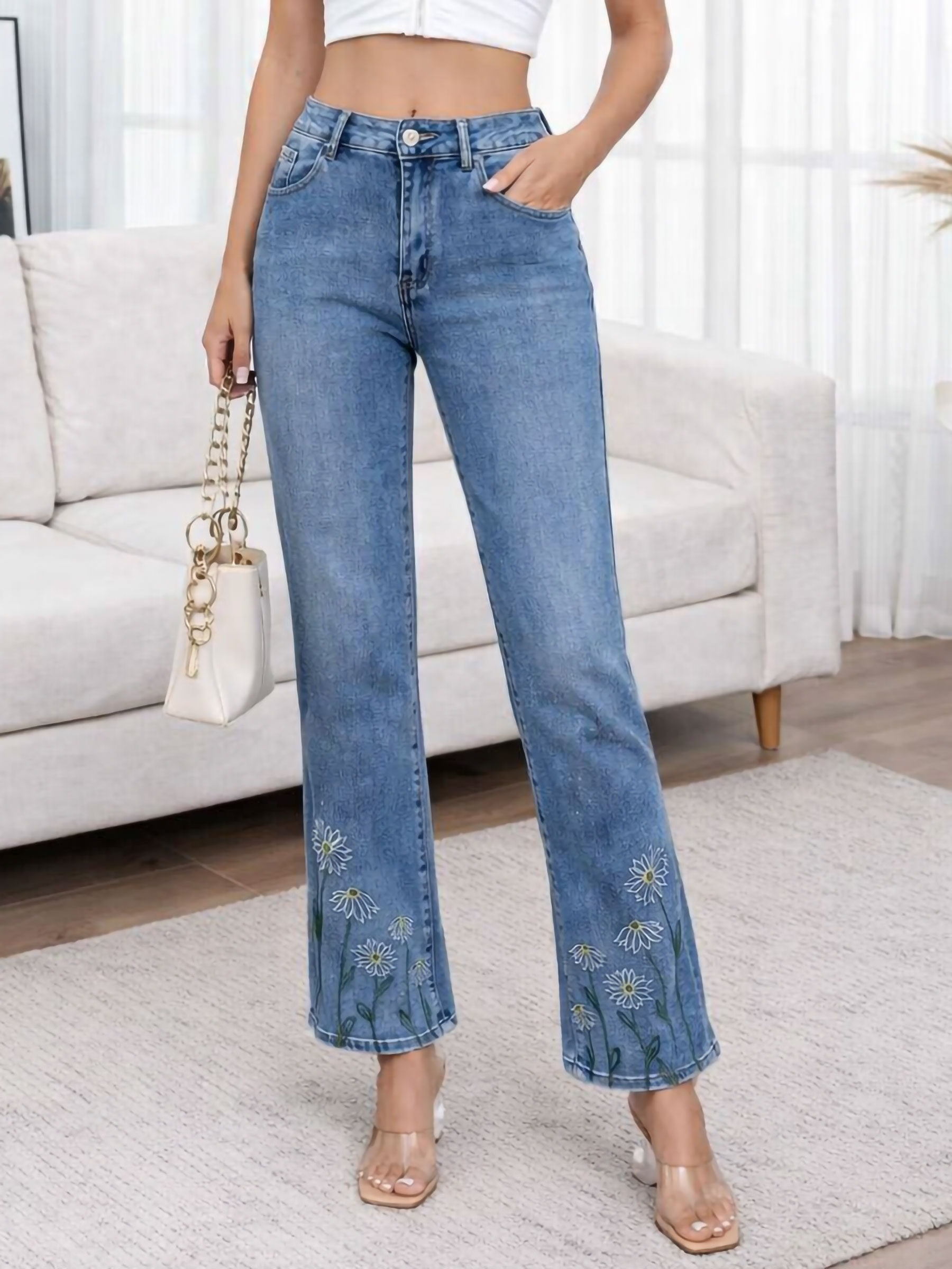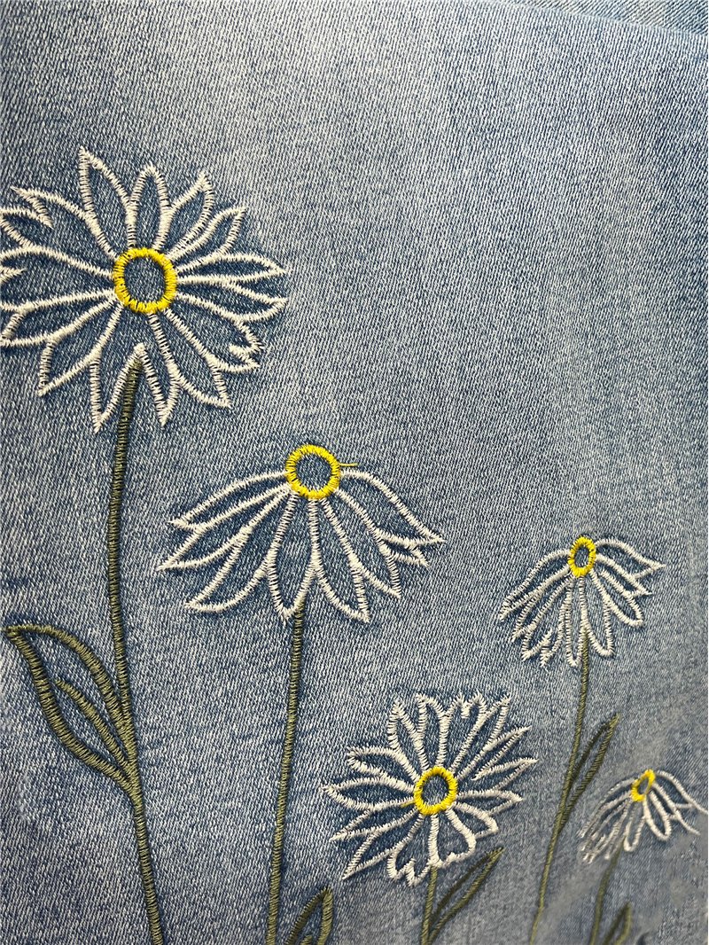 Jeans rectos margaritas bordadas