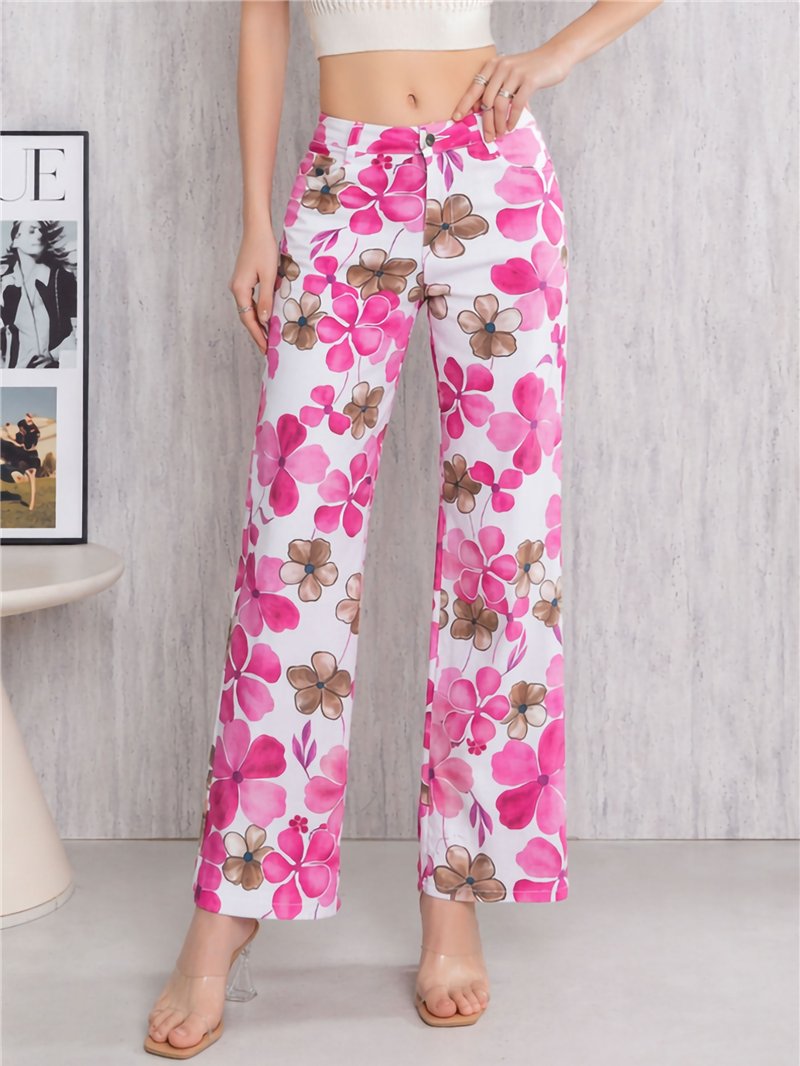 Pantalón recto floral rosa