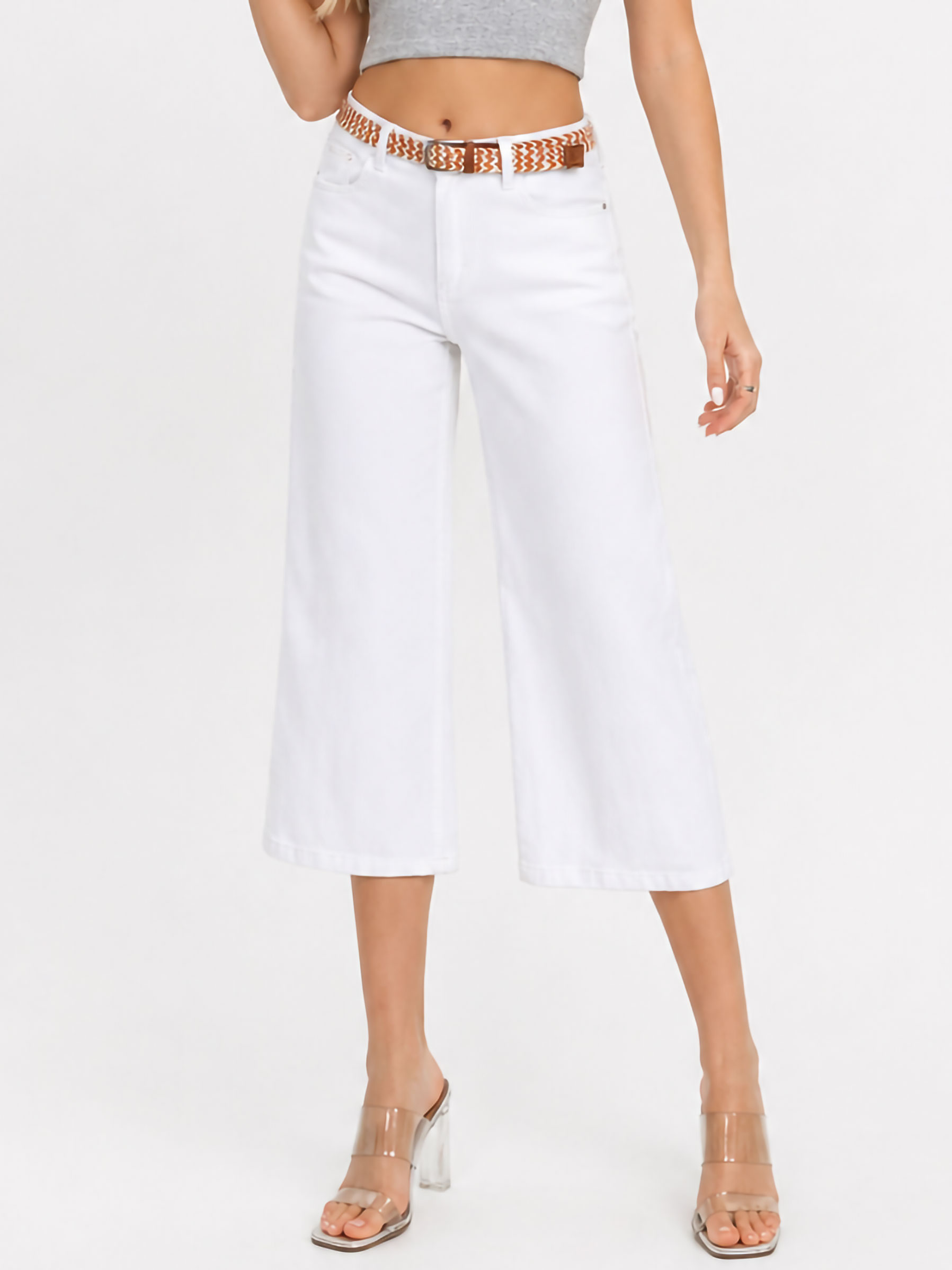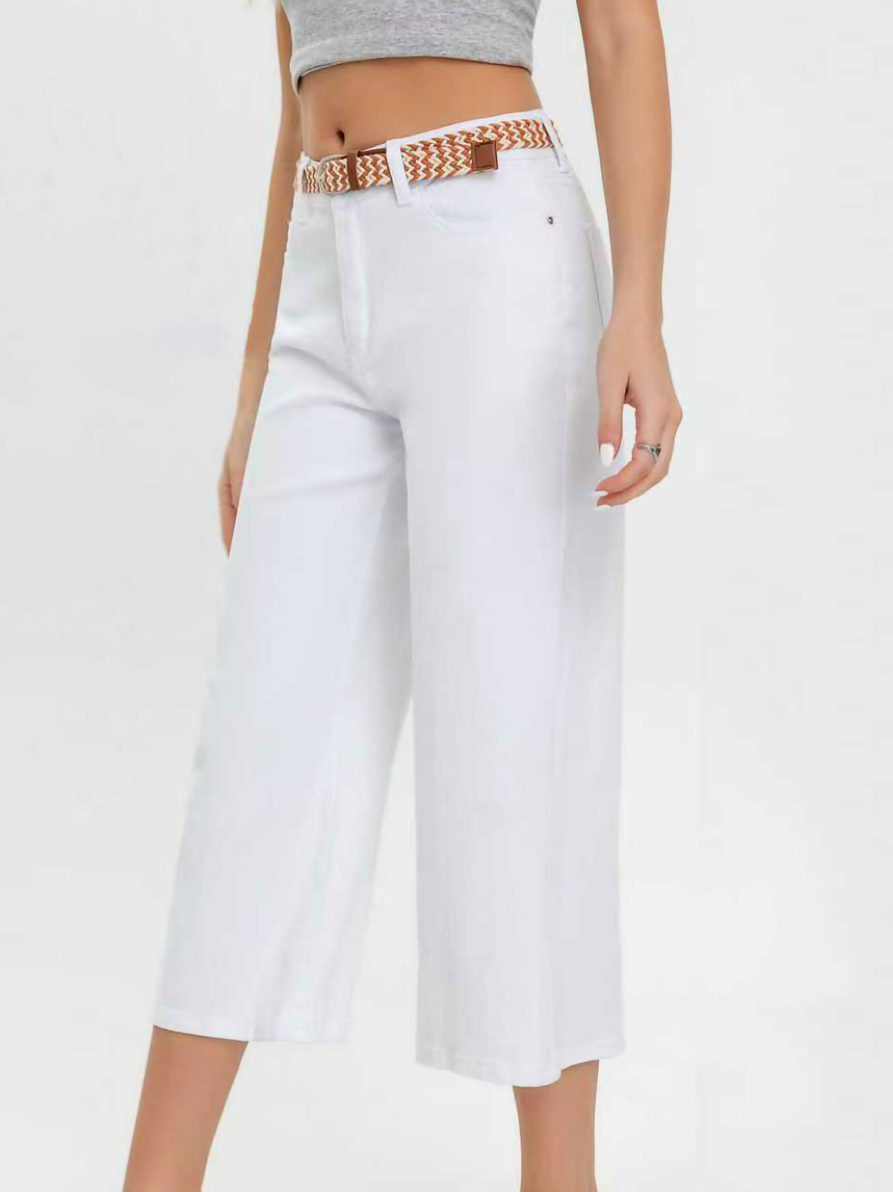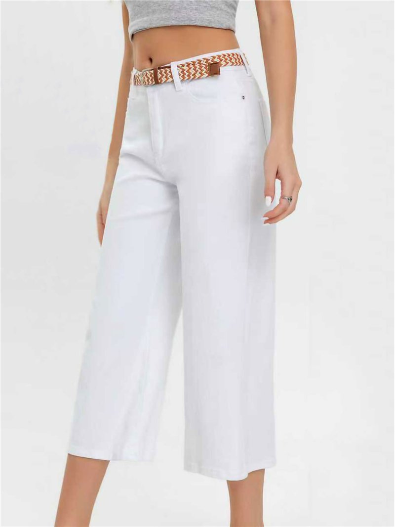 Pantalón vaquero culotte blanco cinturón