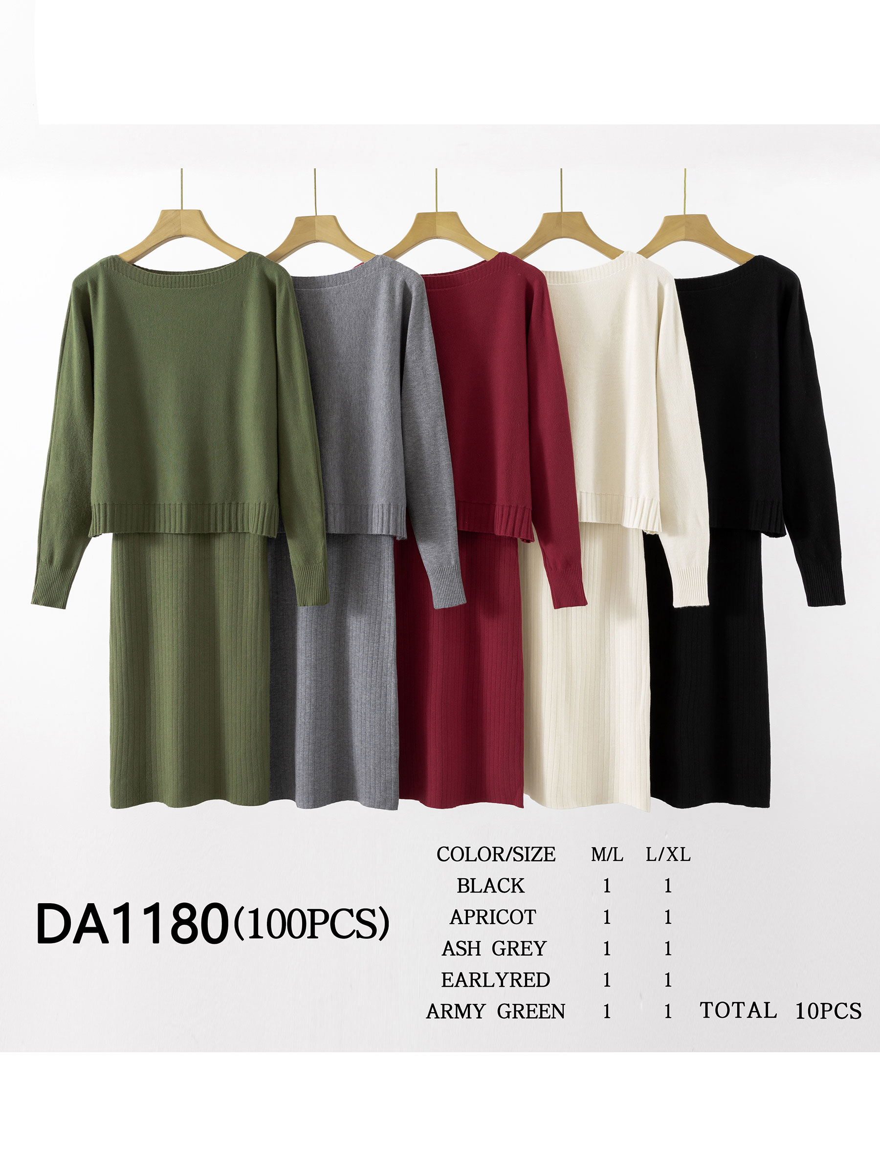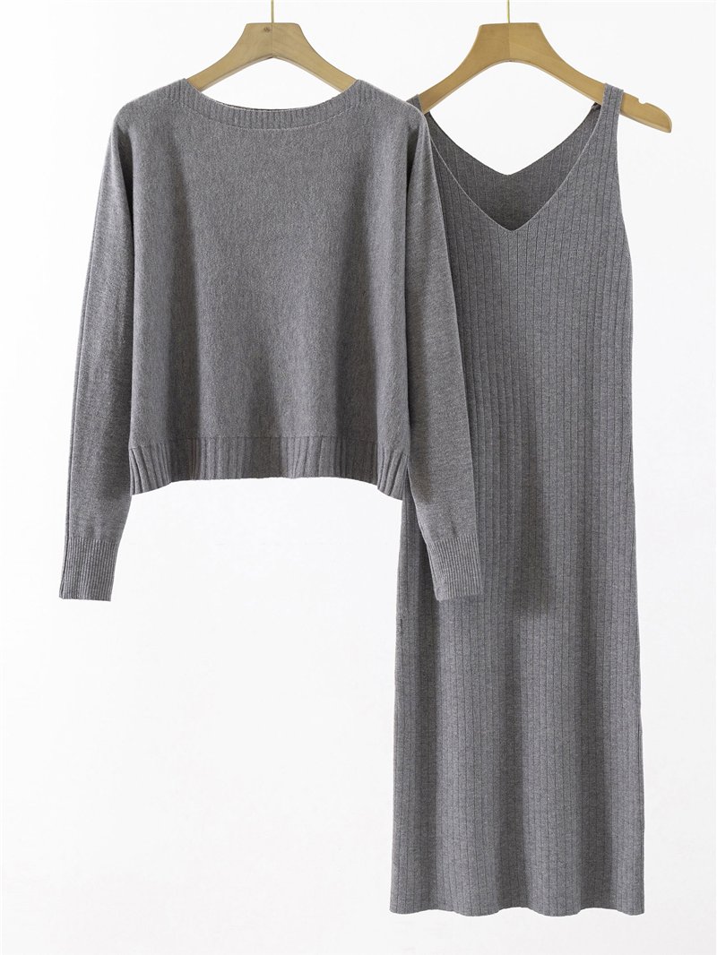 Detalles de conjunto jersey + vestido largo canalé DB-DA1180