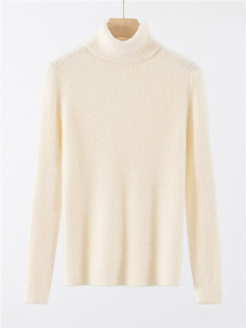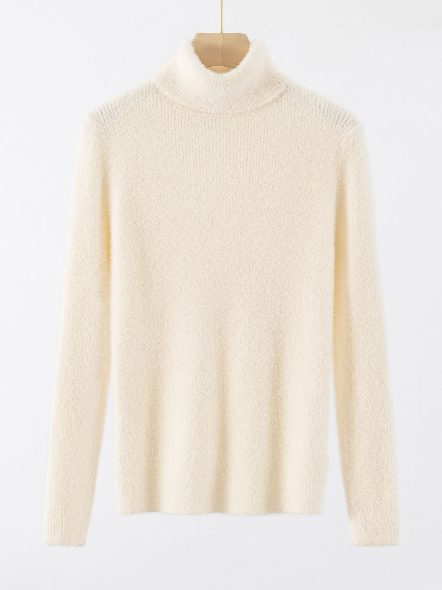 Jersey canalé de punto pelo. Tacto extra suave. Cuello vuelto. Manga larga.