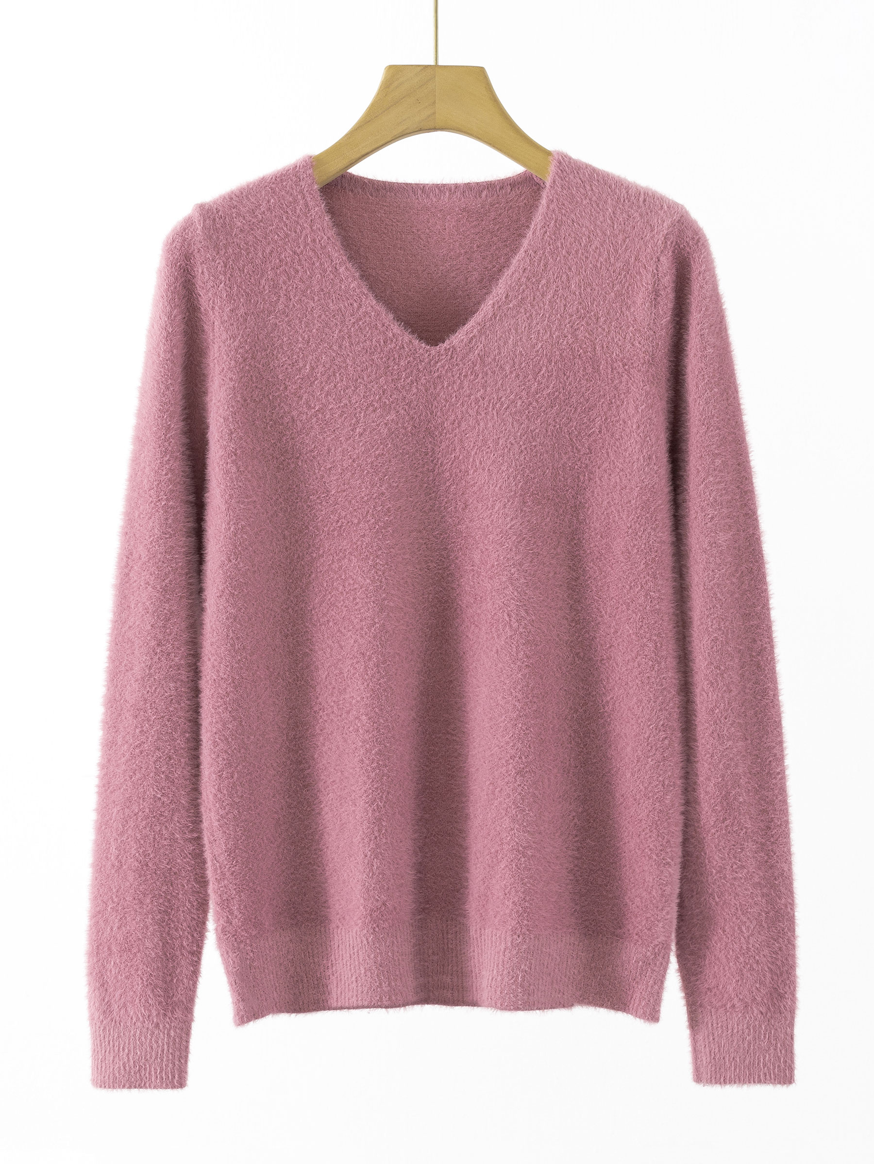 Jersey de punto pelo. Tacto extra suave. Cuello pico. Manga larga.