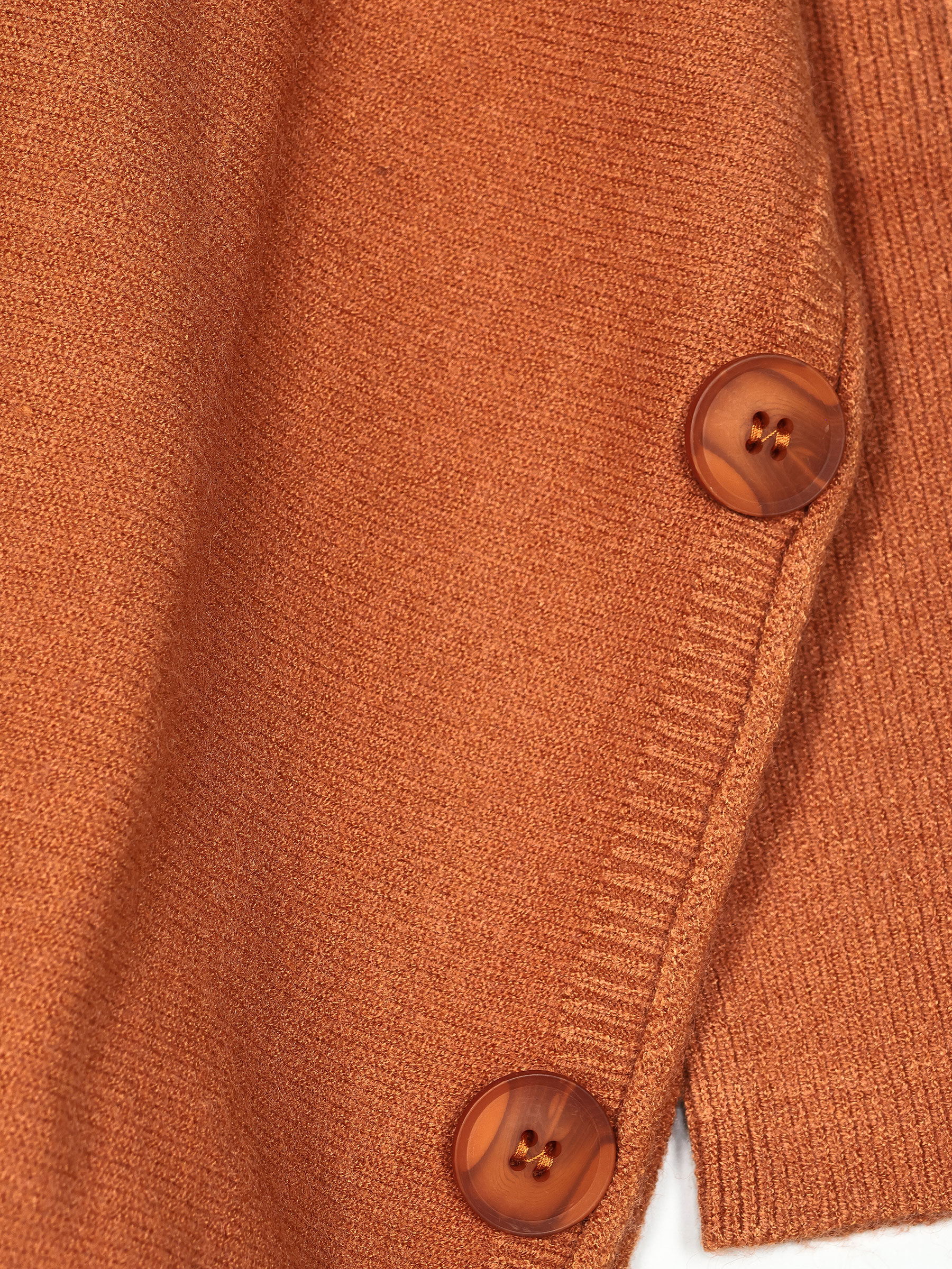 Jersey maxi de punto cálido. Tacto suave. Detalle botones. Cuello redondo. Manga larga.