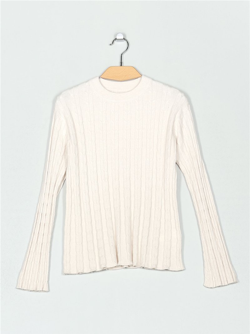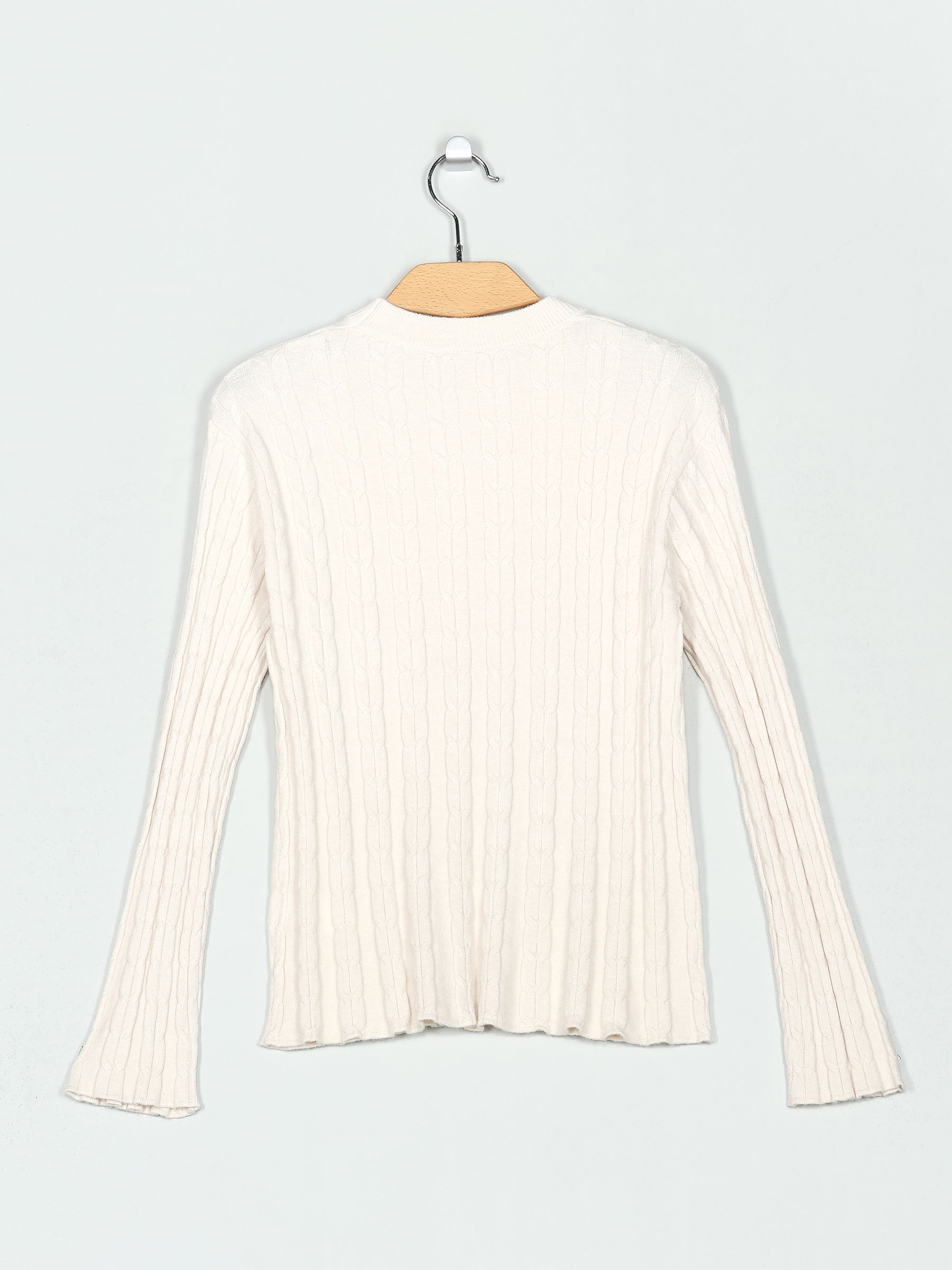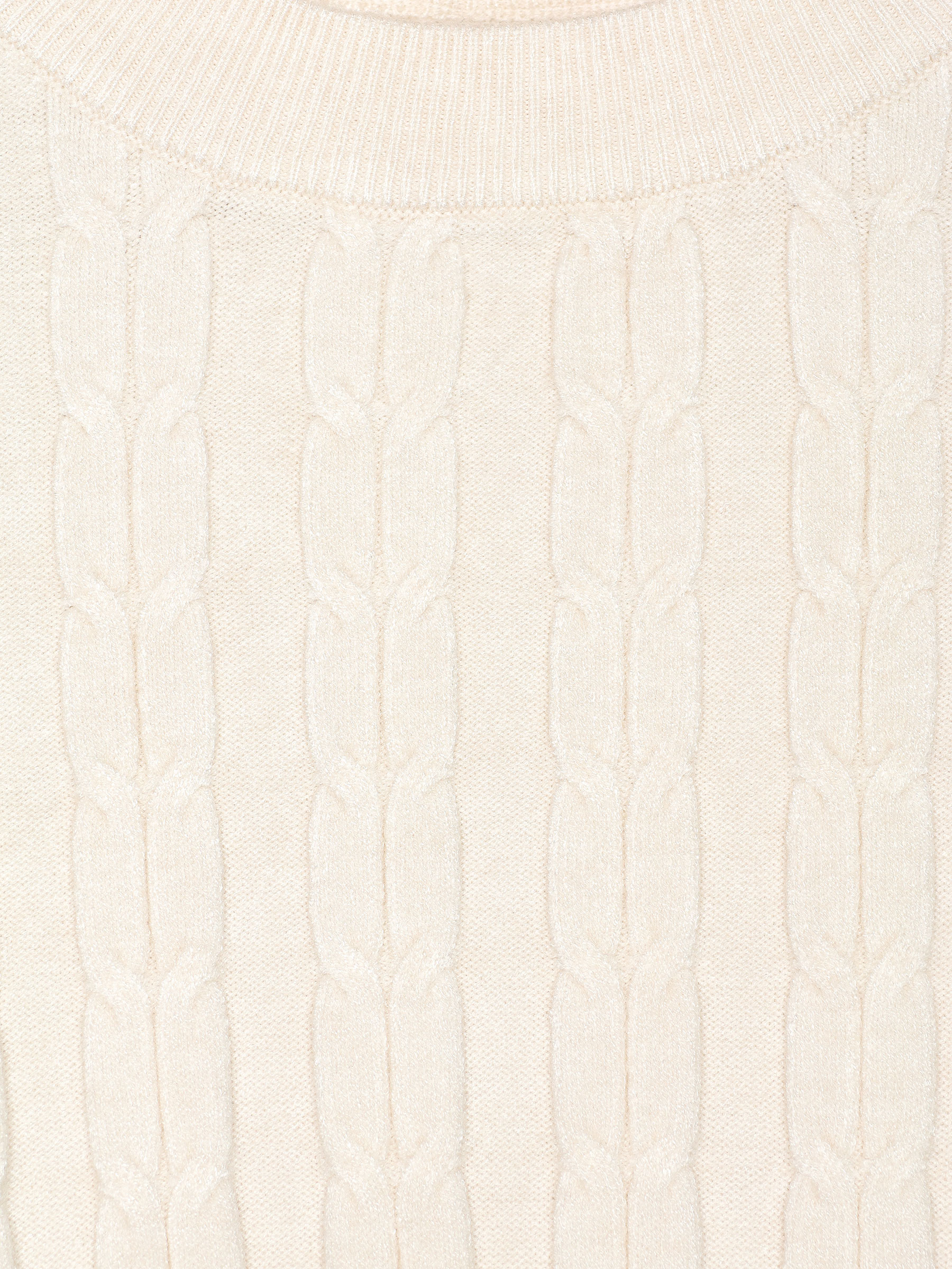 Jersey de punto soft en estructura con diseño trenzado. Cuello redondo. Manga larga.