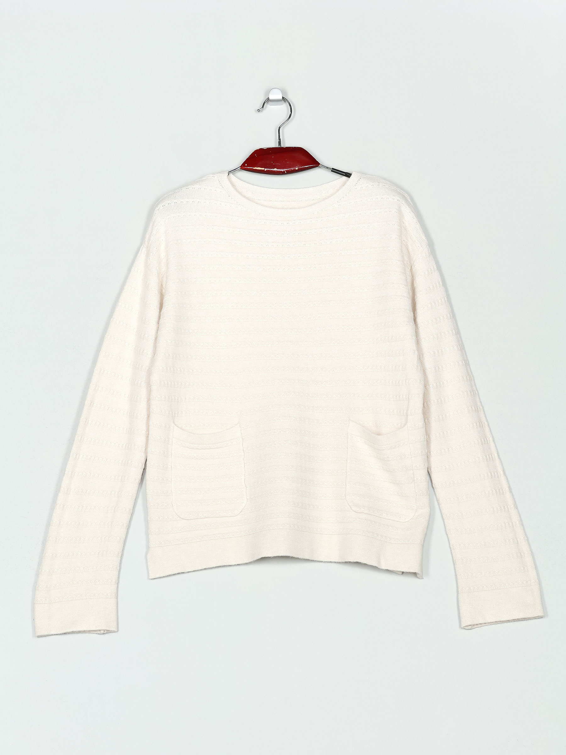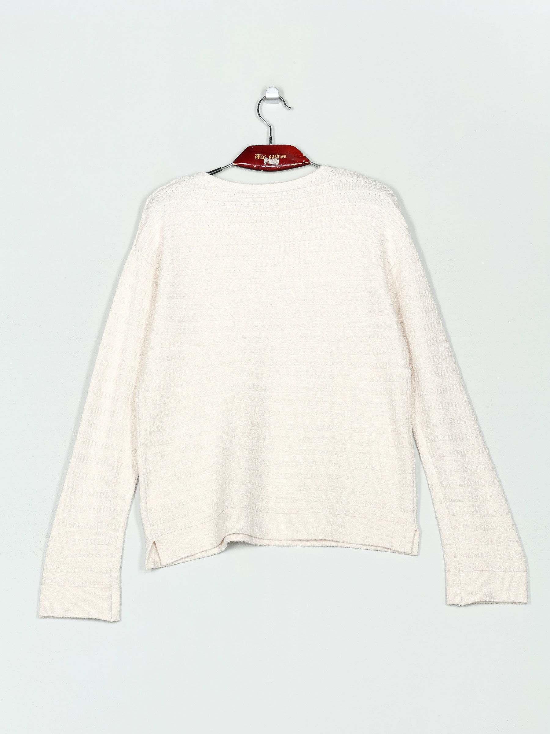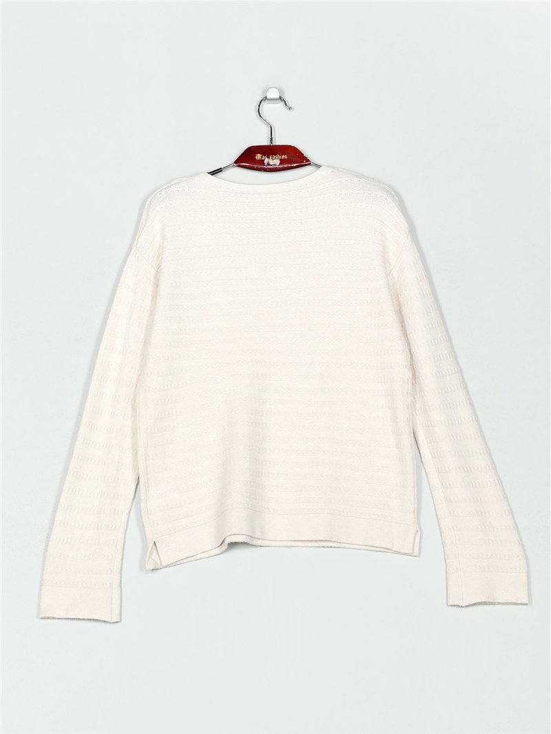 Jersey de punto soft. Bajo con aberturas laterales. Cuello redondo. Manga larga.
