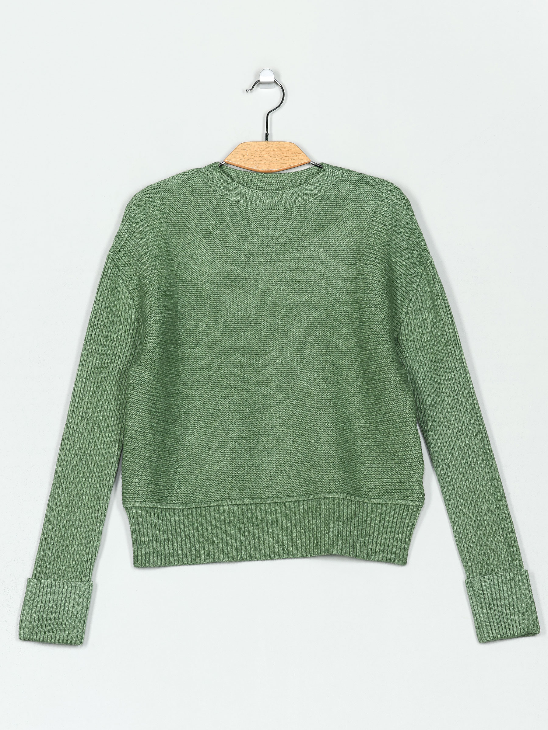 Jersey de punto cálido. Cuello redondo. Manga larga.