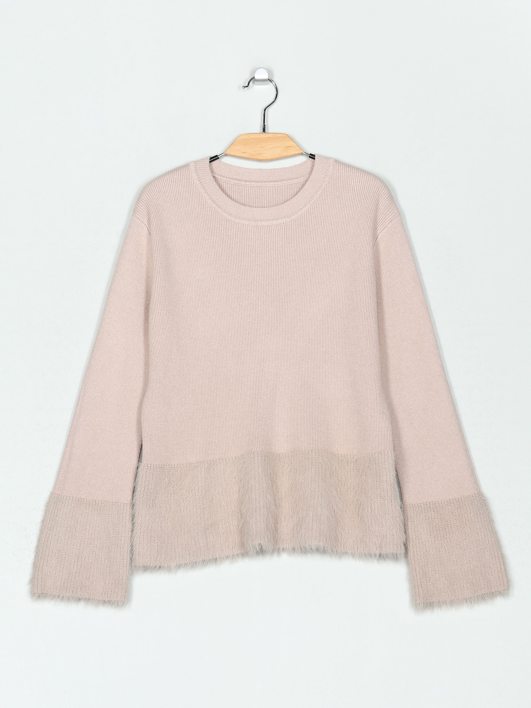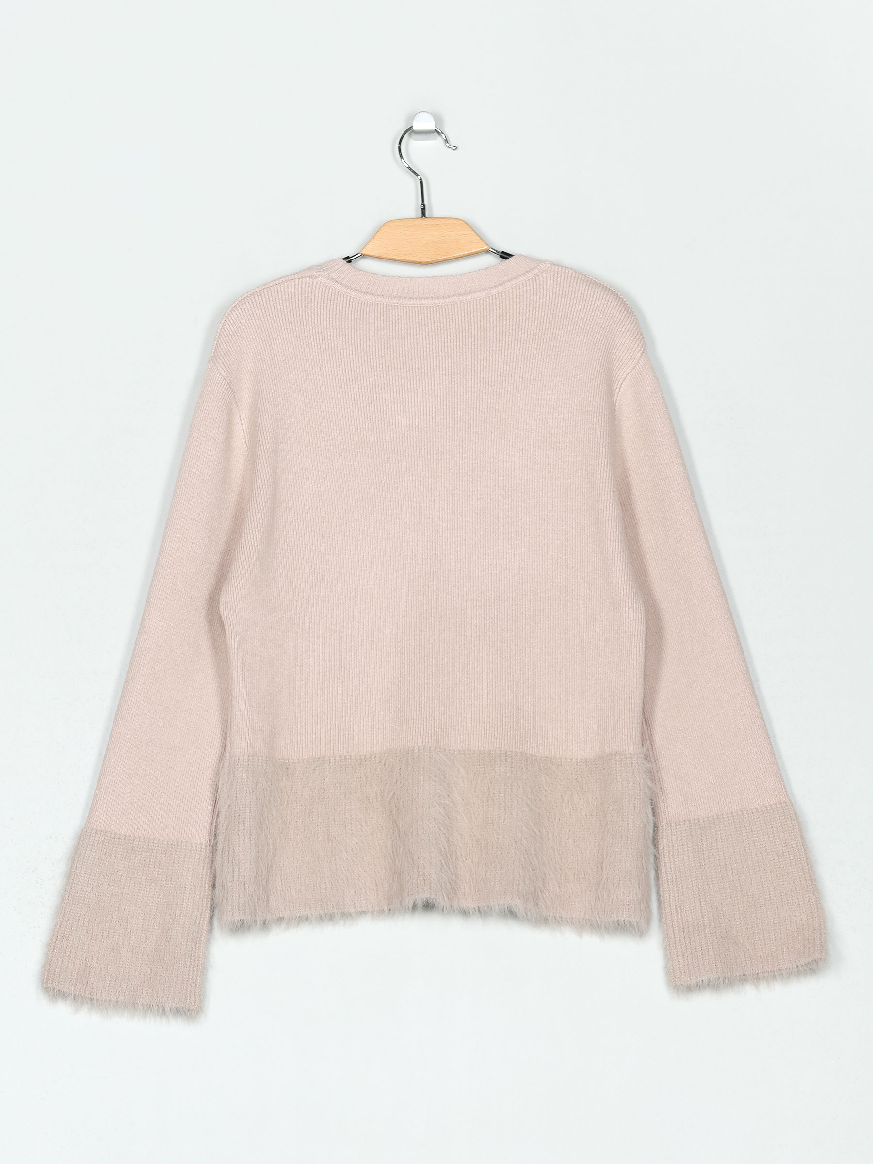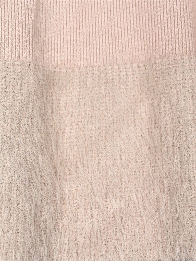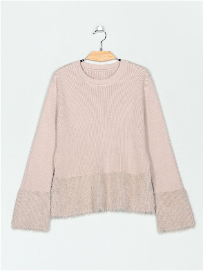 Jersey de punto cálido. Tacto suave. Detalle pelo. Cuello redondo. Manga larga.