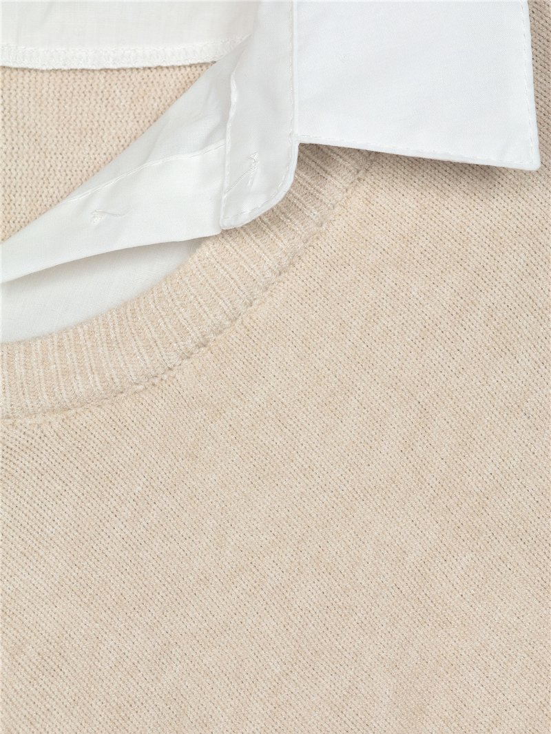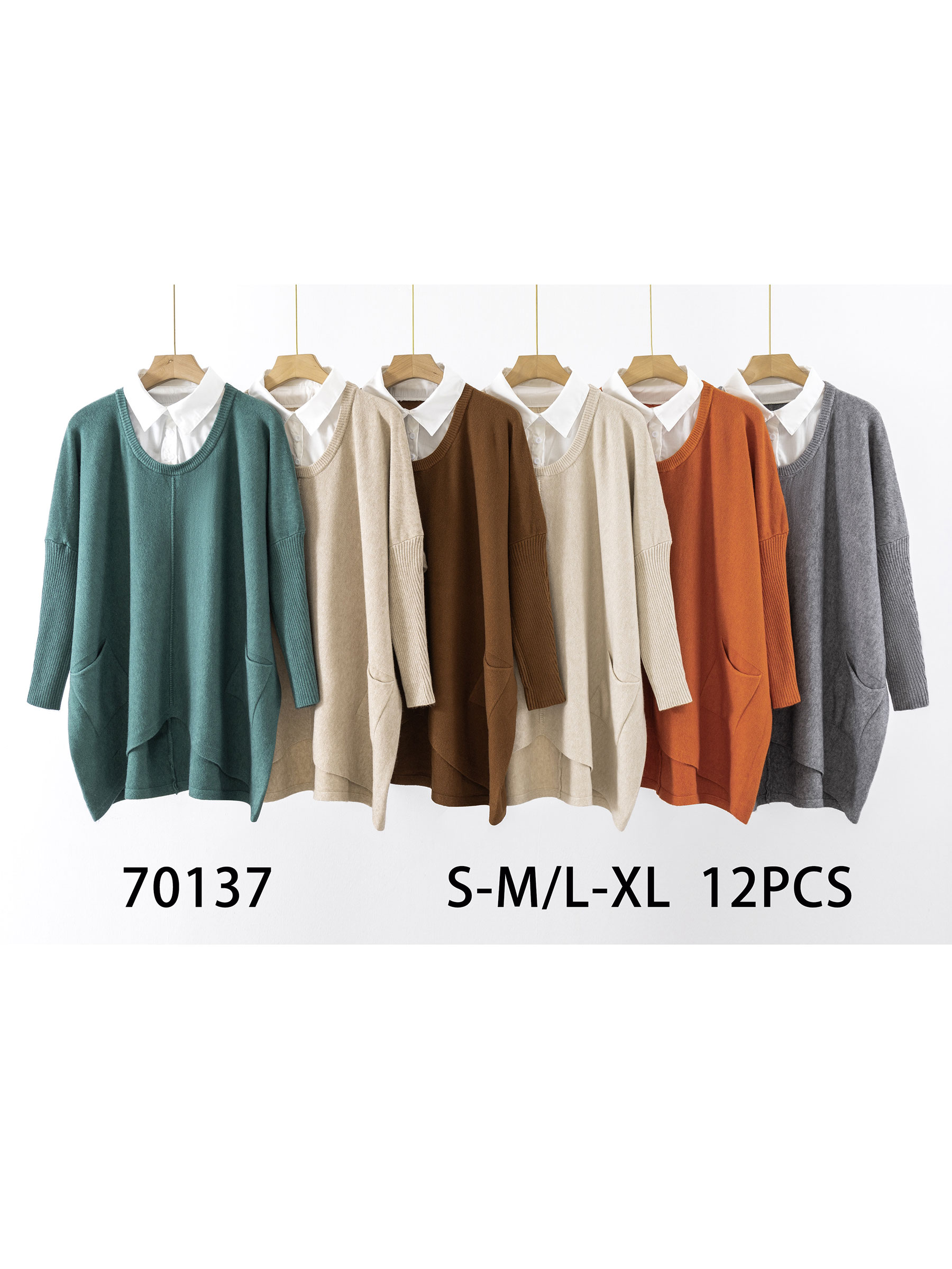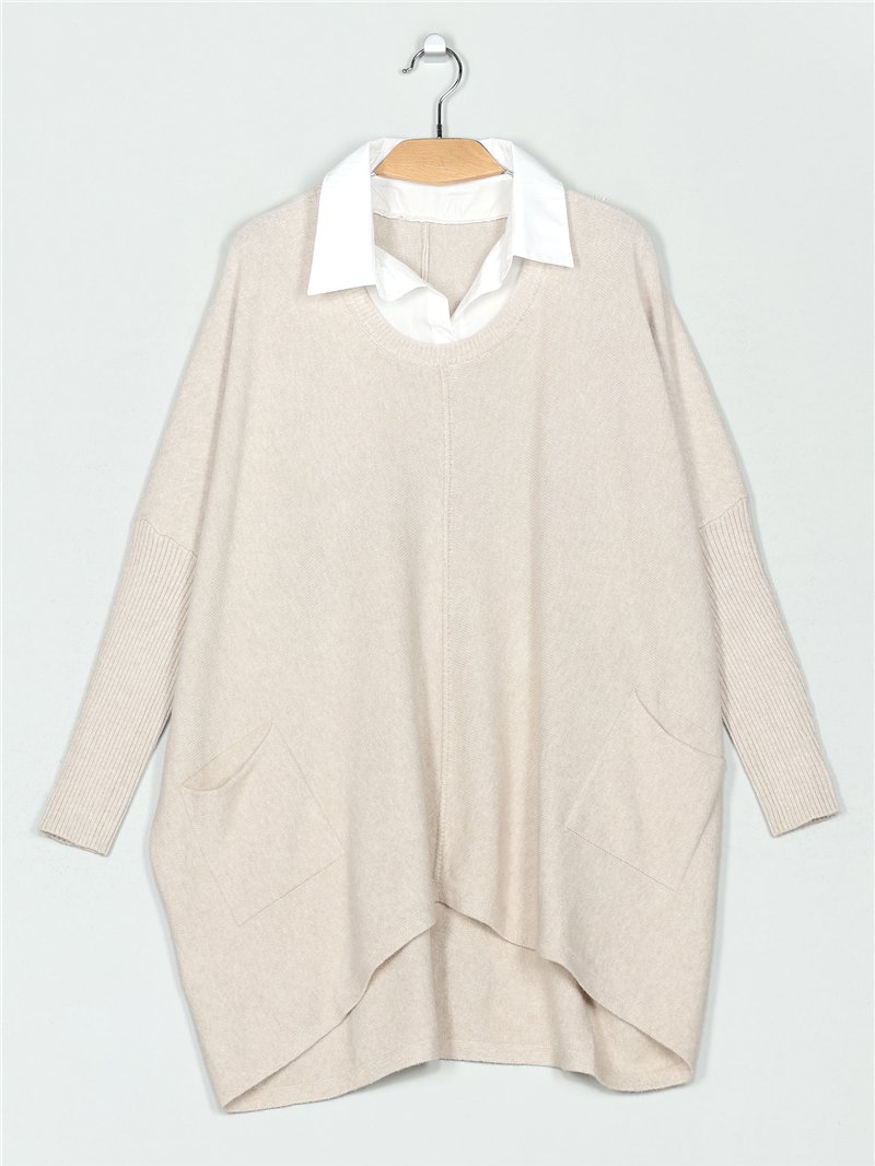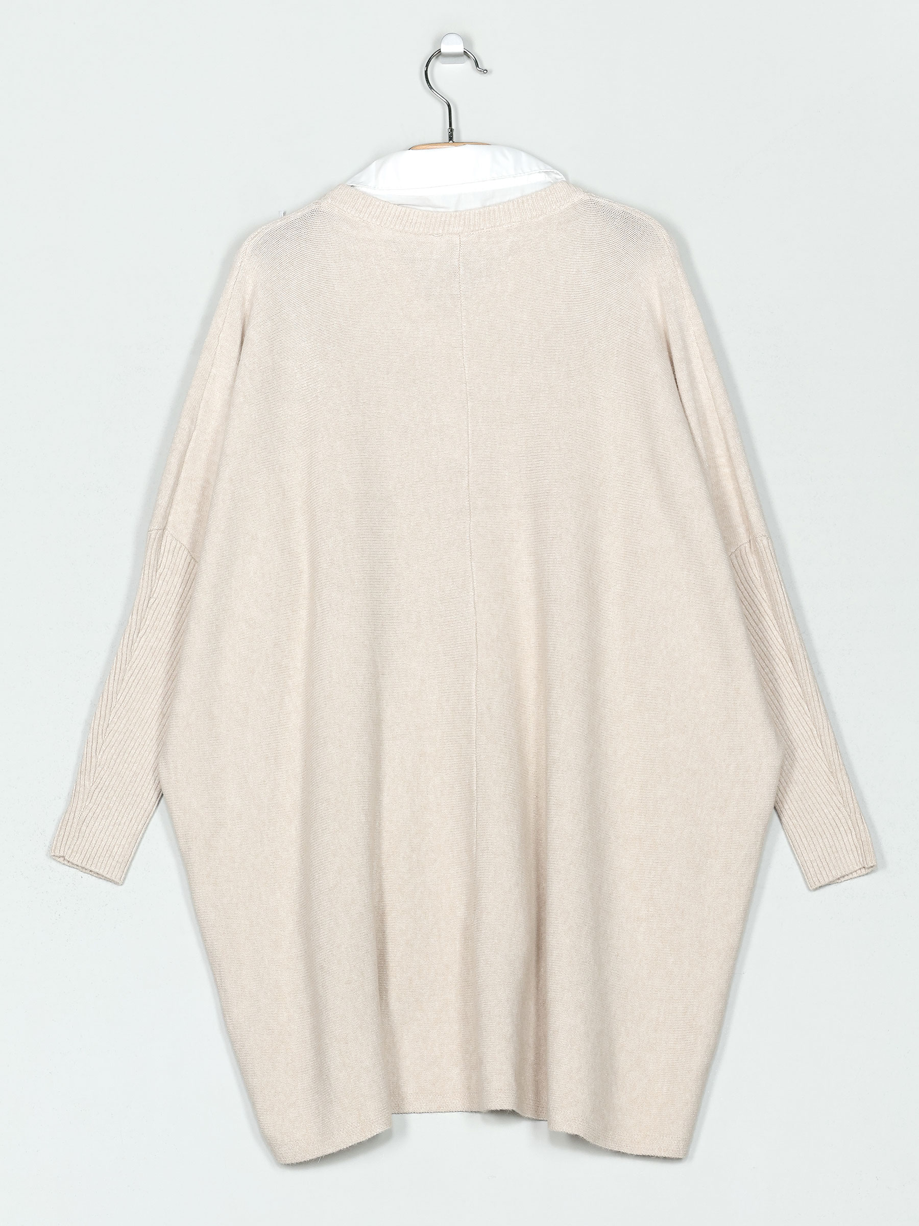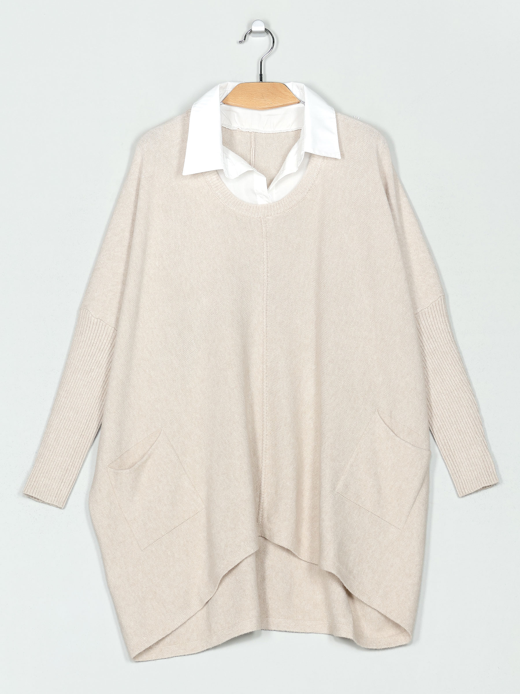 Jersey de punto soft. Talla grande. Efecto camisa. Bolsillos delanteros de plastrón. Cuello solapa. Manga larga.