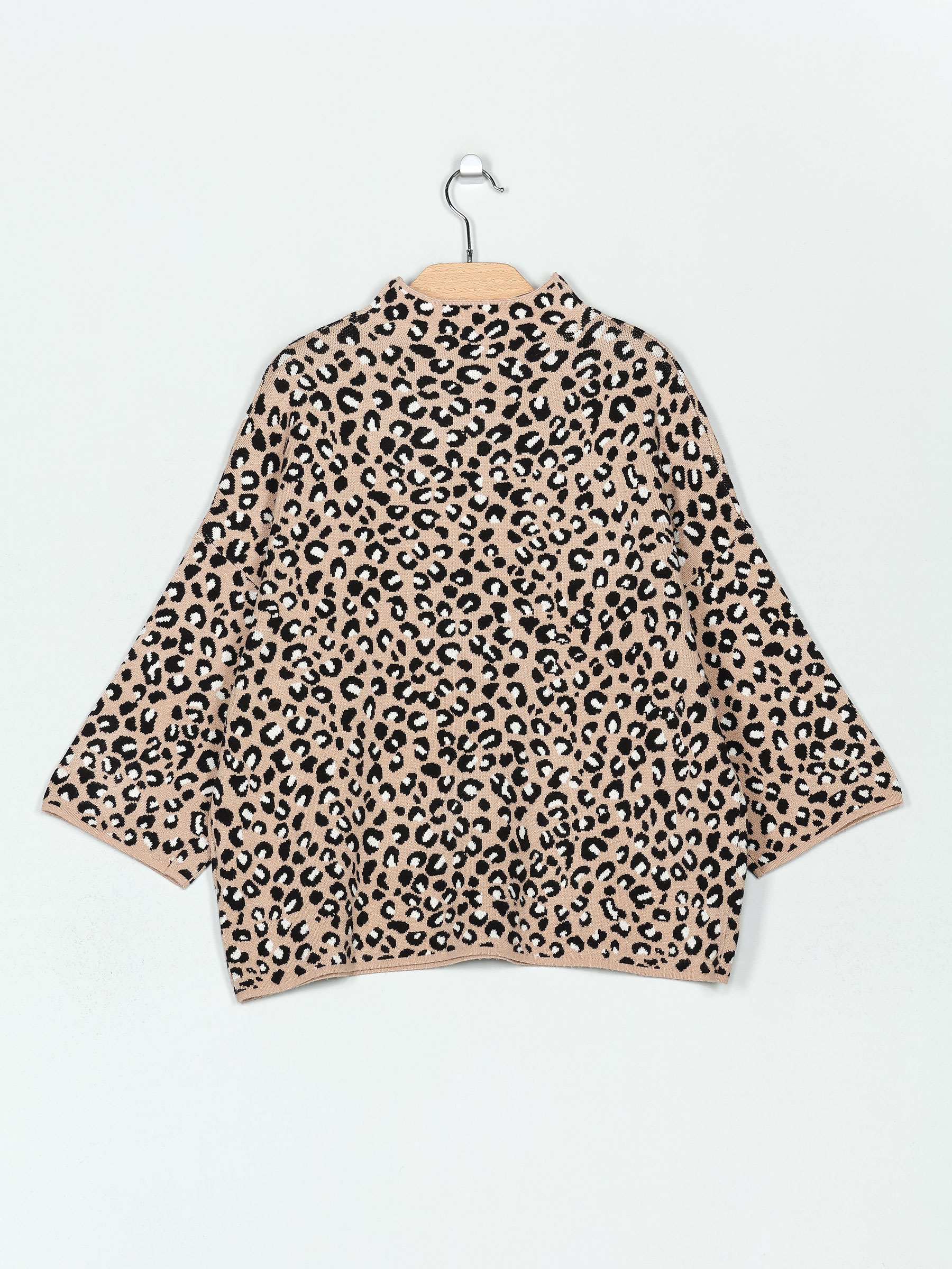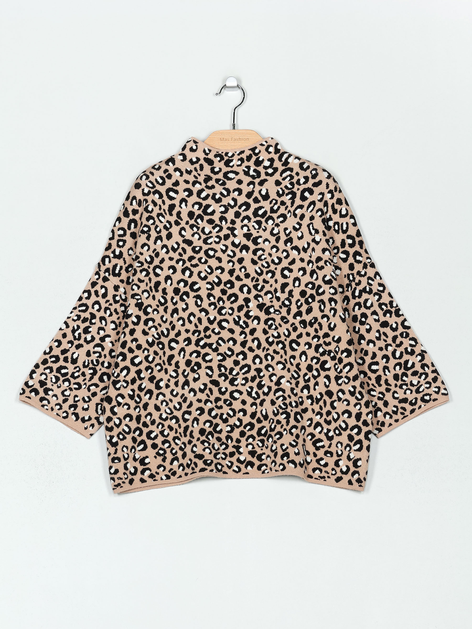 Jersey amplio estampado de animal. Punto cálido. Tacto suave. Acabados en rib. Cuello perkins. Manga 3/4.