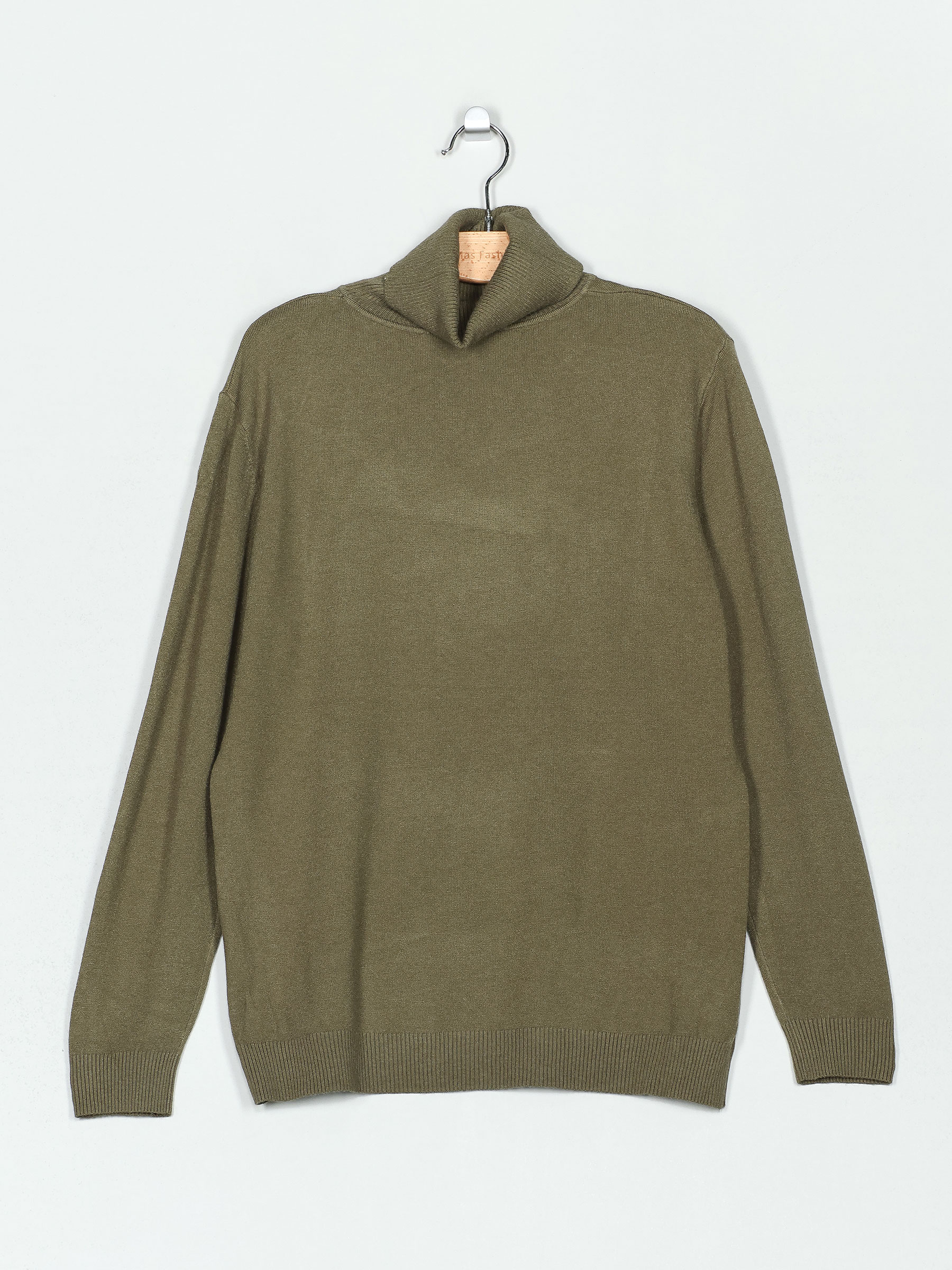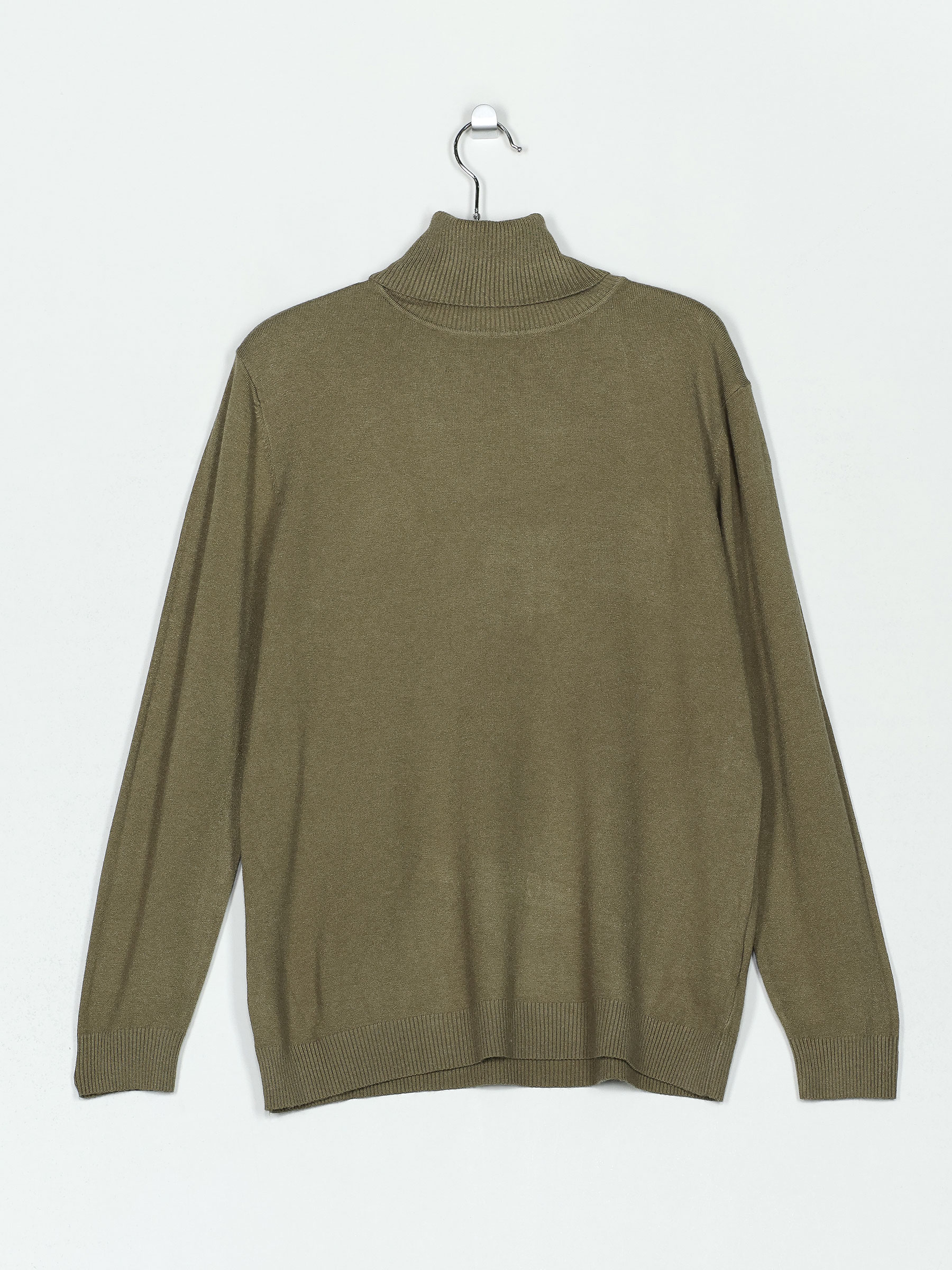 Jersey amplio de punto fino. Tacto suave. Acabados en rib. Cuello vuelto. Manga larga.