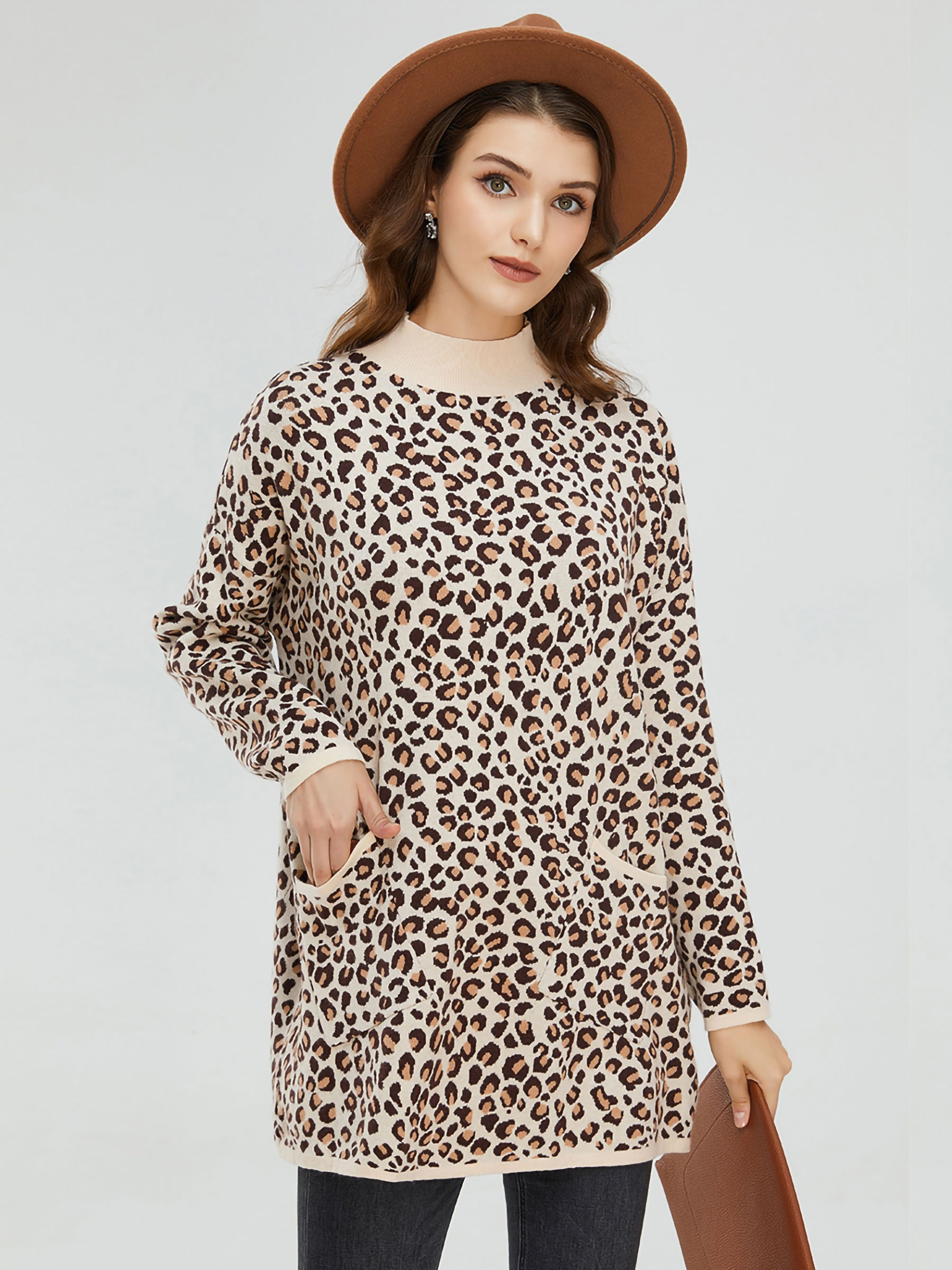 Detalles de jersey amplio leopardo cuello perkins MF-70070-1