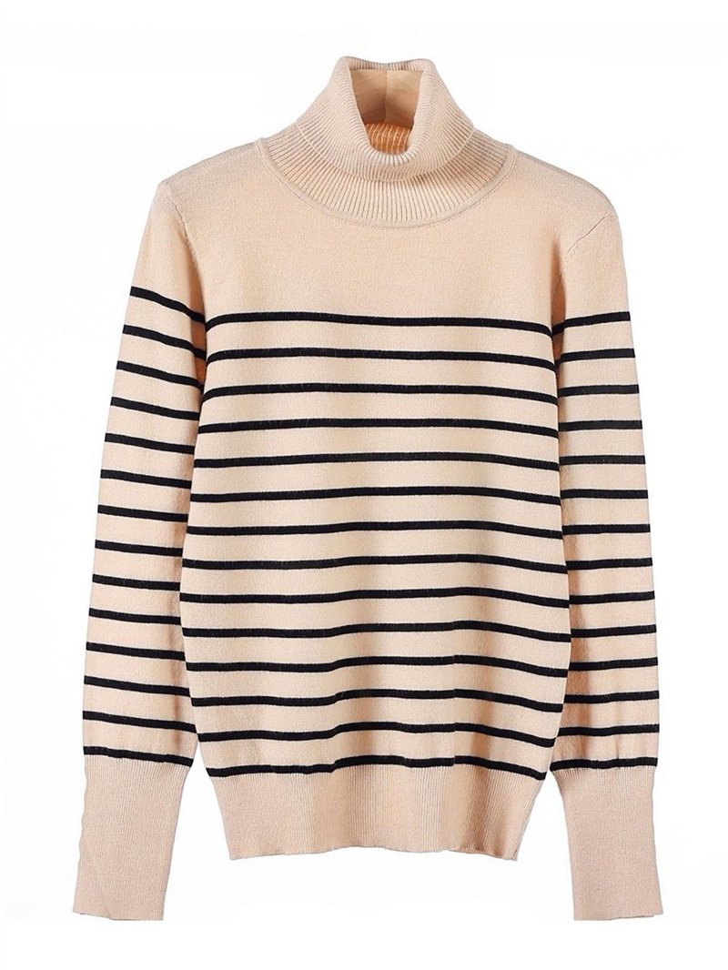 Jersey rayas de punto fino. Tacto suave. Cuello vuelto. Manga larga con botones.
