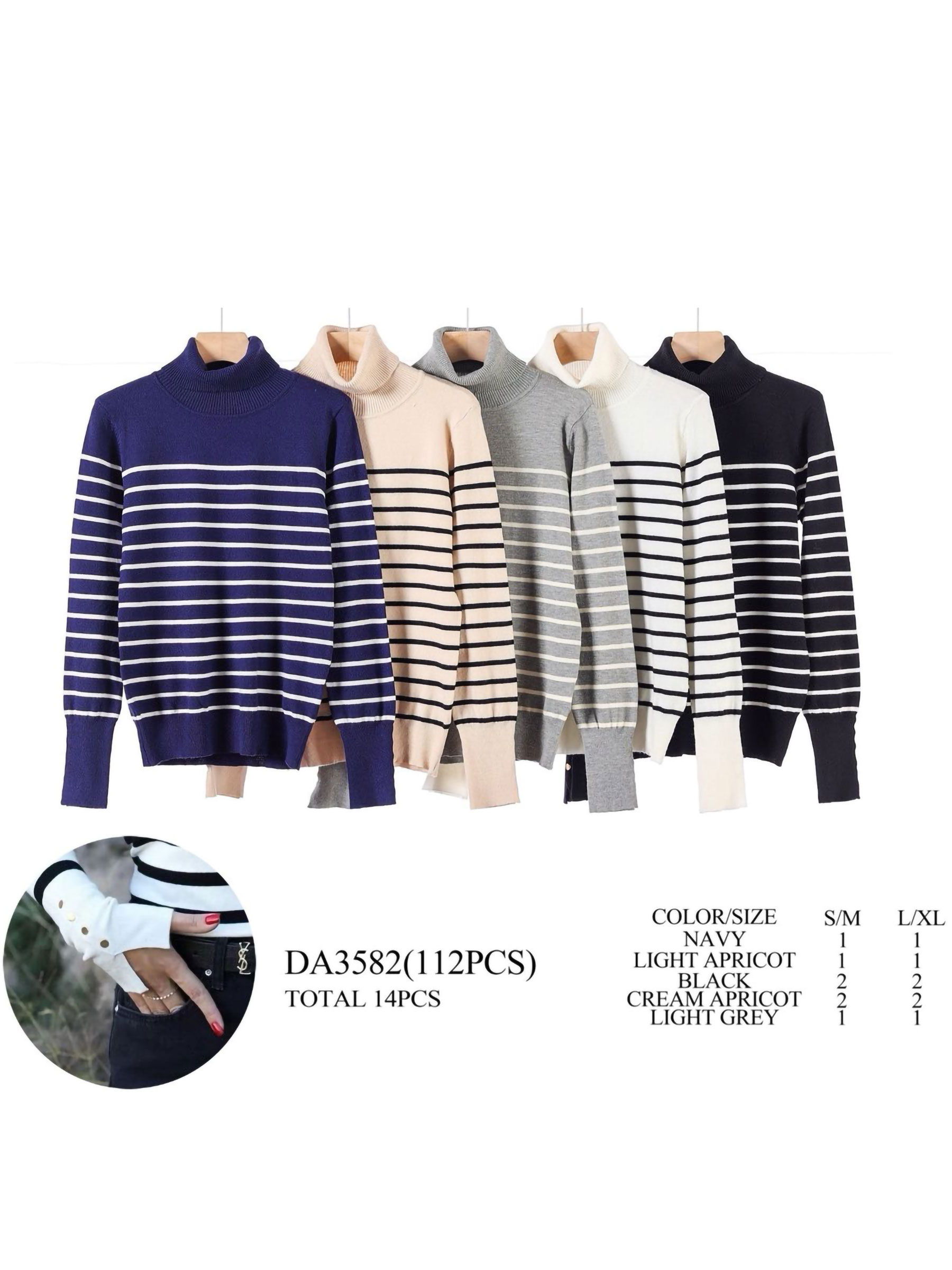 Detalles de jersey rayas manga botones cuello vuelto DB-DA3582